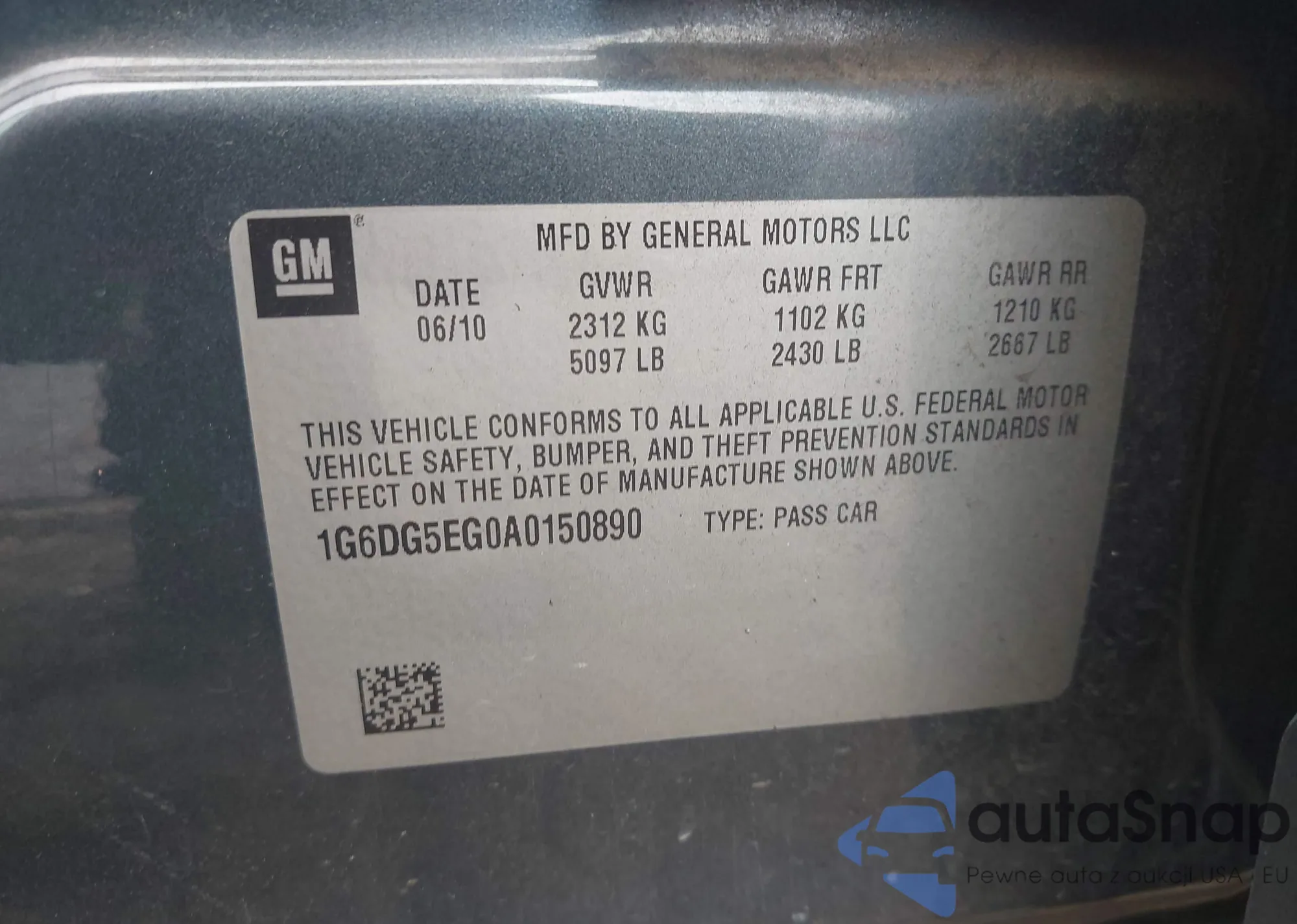 • VIN 1G6DG5EG0A0150890