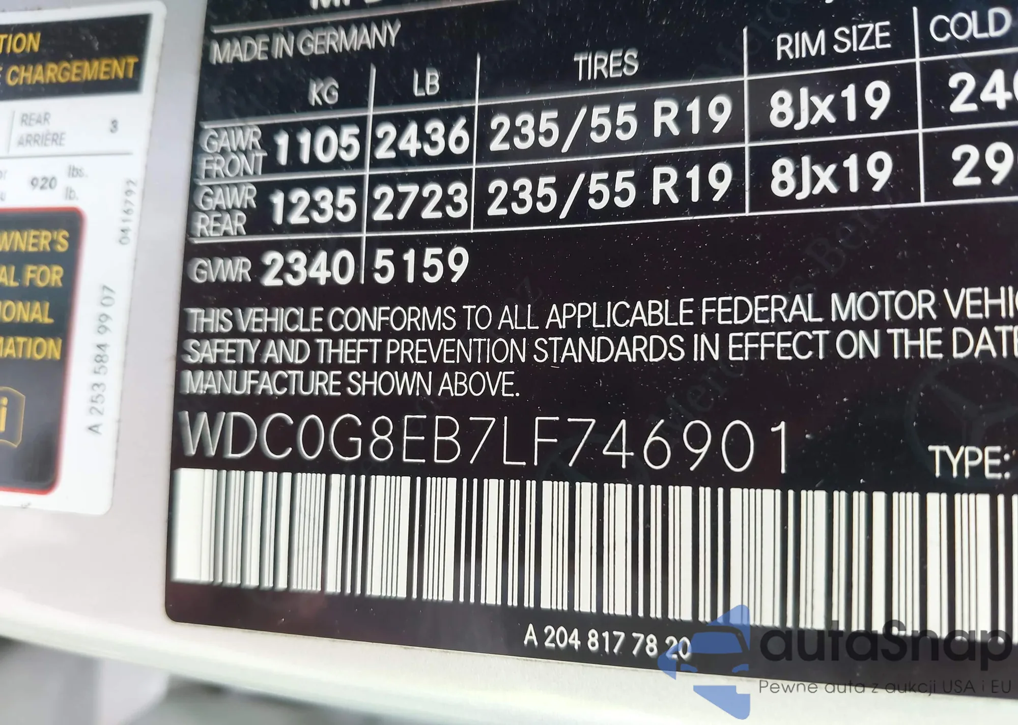 • VIN WDC0G8EB7LF746901