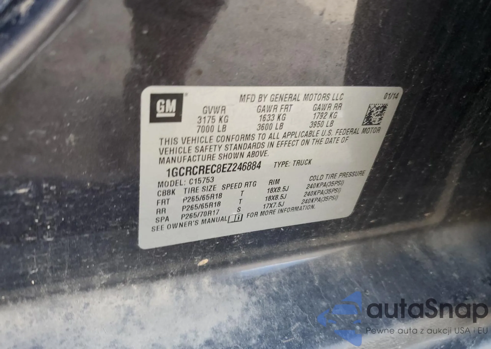LOT: 56503245 VIN: 1GCRCREC8EZ246884