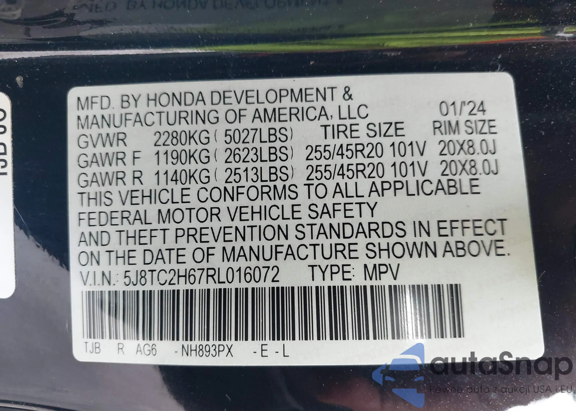 • VIN 5J8YE1H0XPL002735