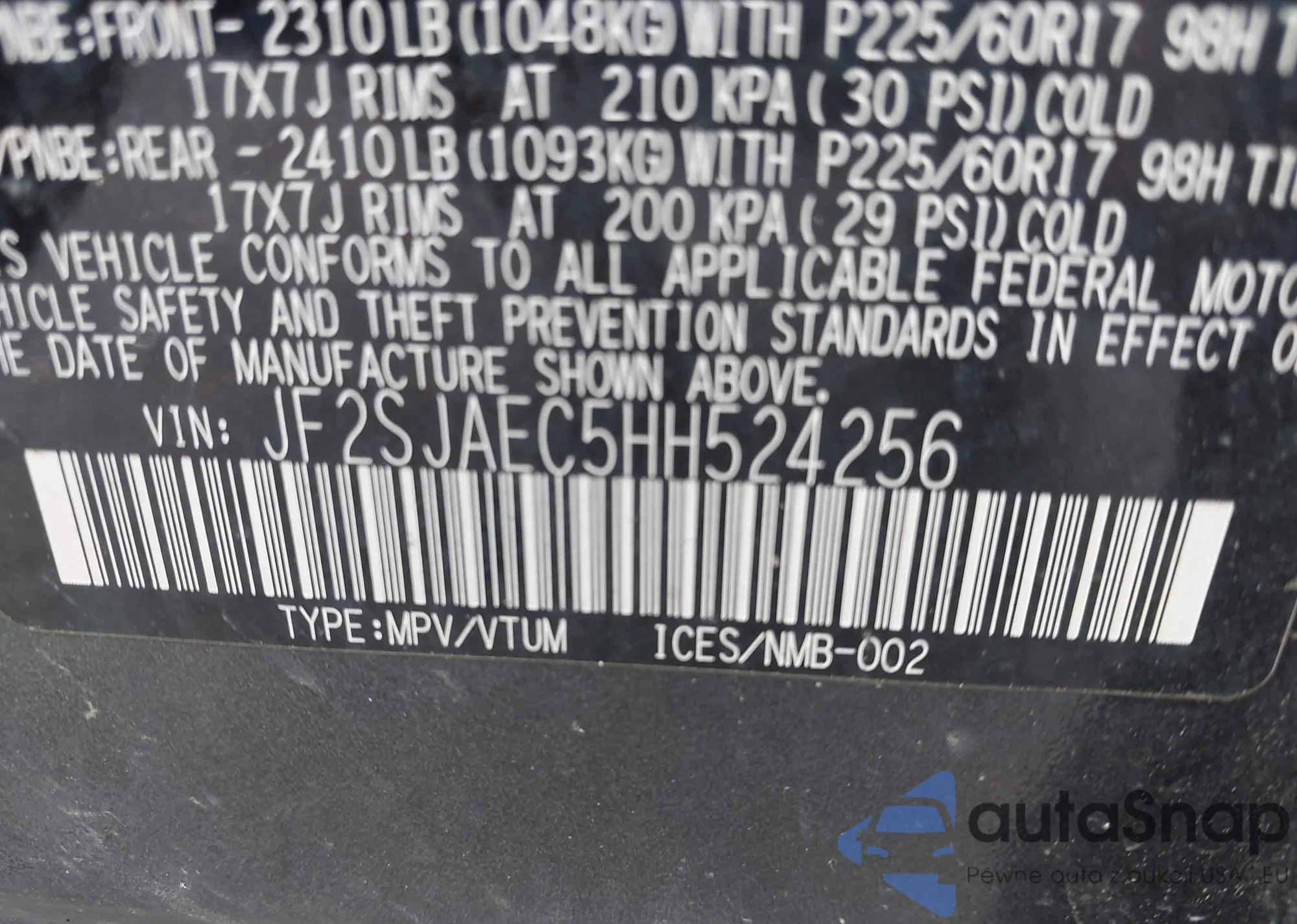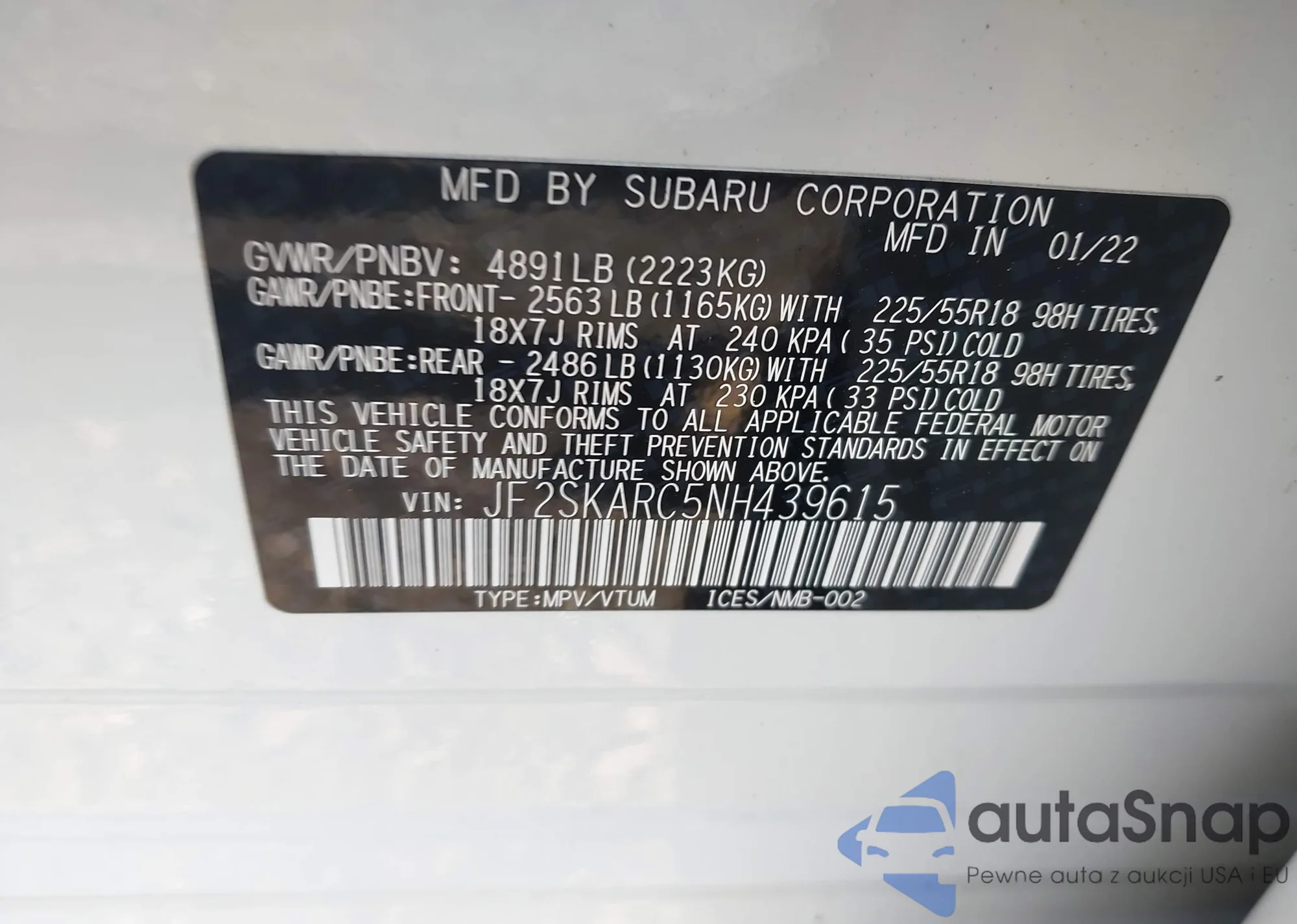 • VIN JF2SKARC5NH439615