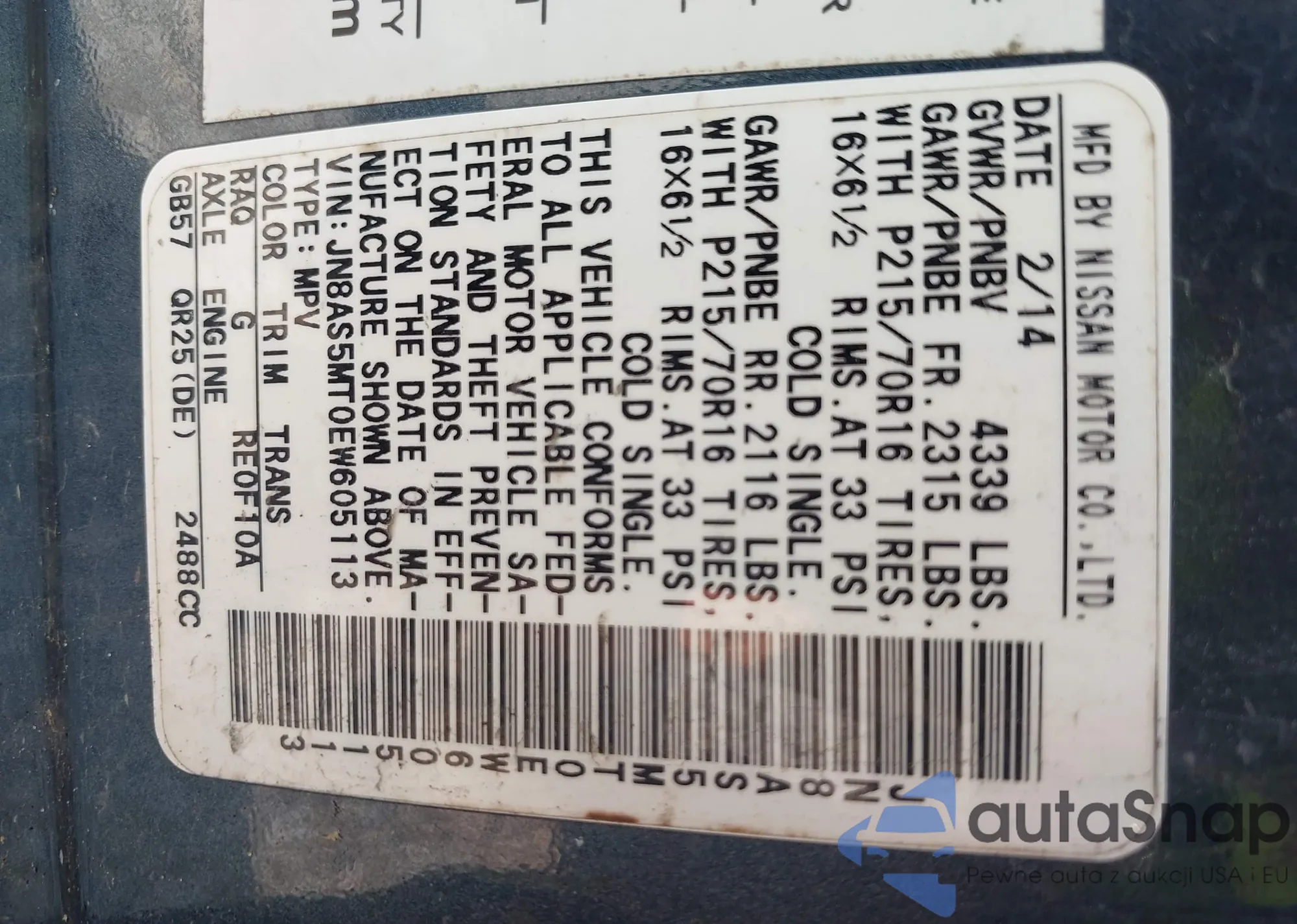 • VIN JN1CV6AR2AM460742