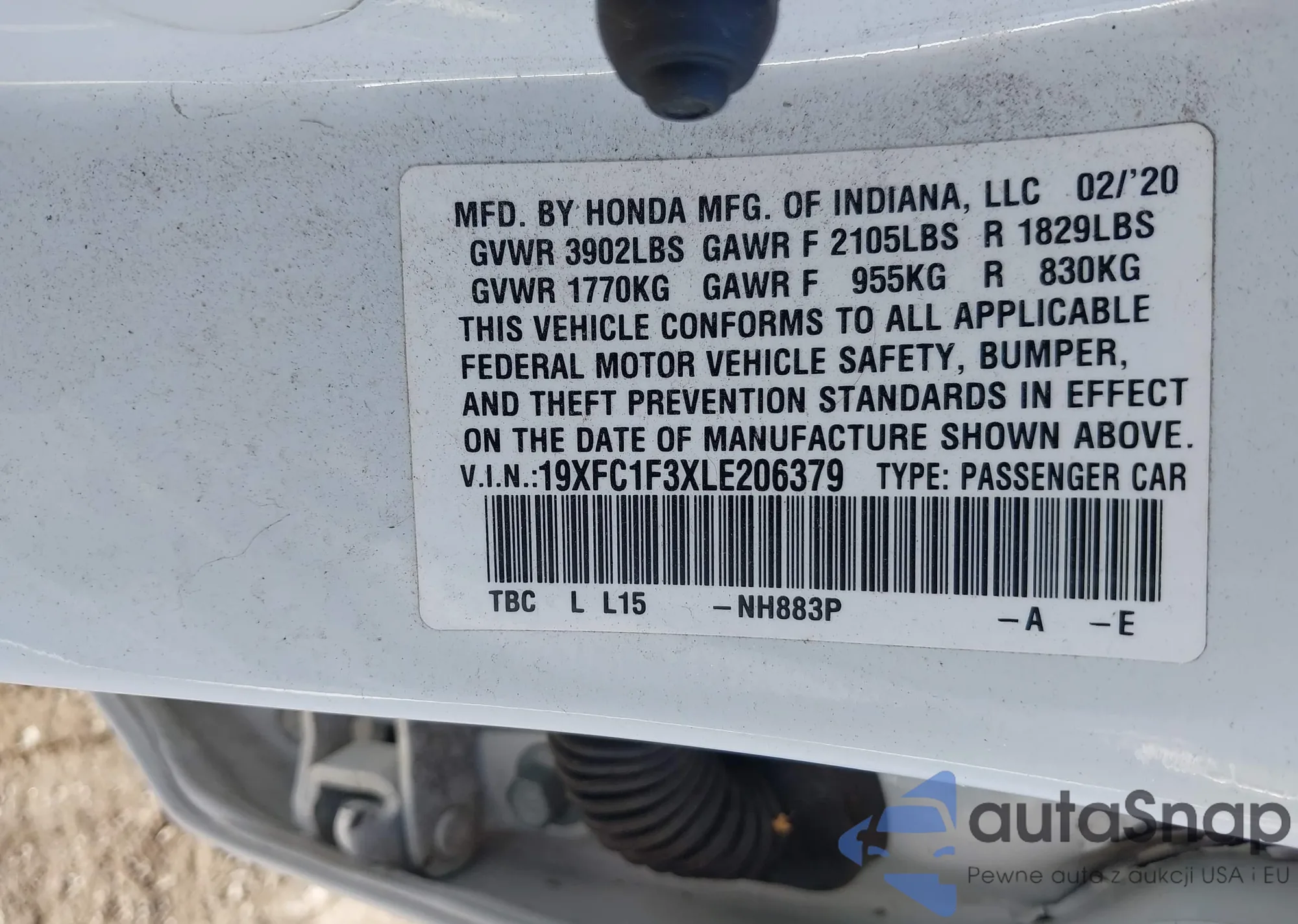 • VIN 19XFC1F3XLE206379