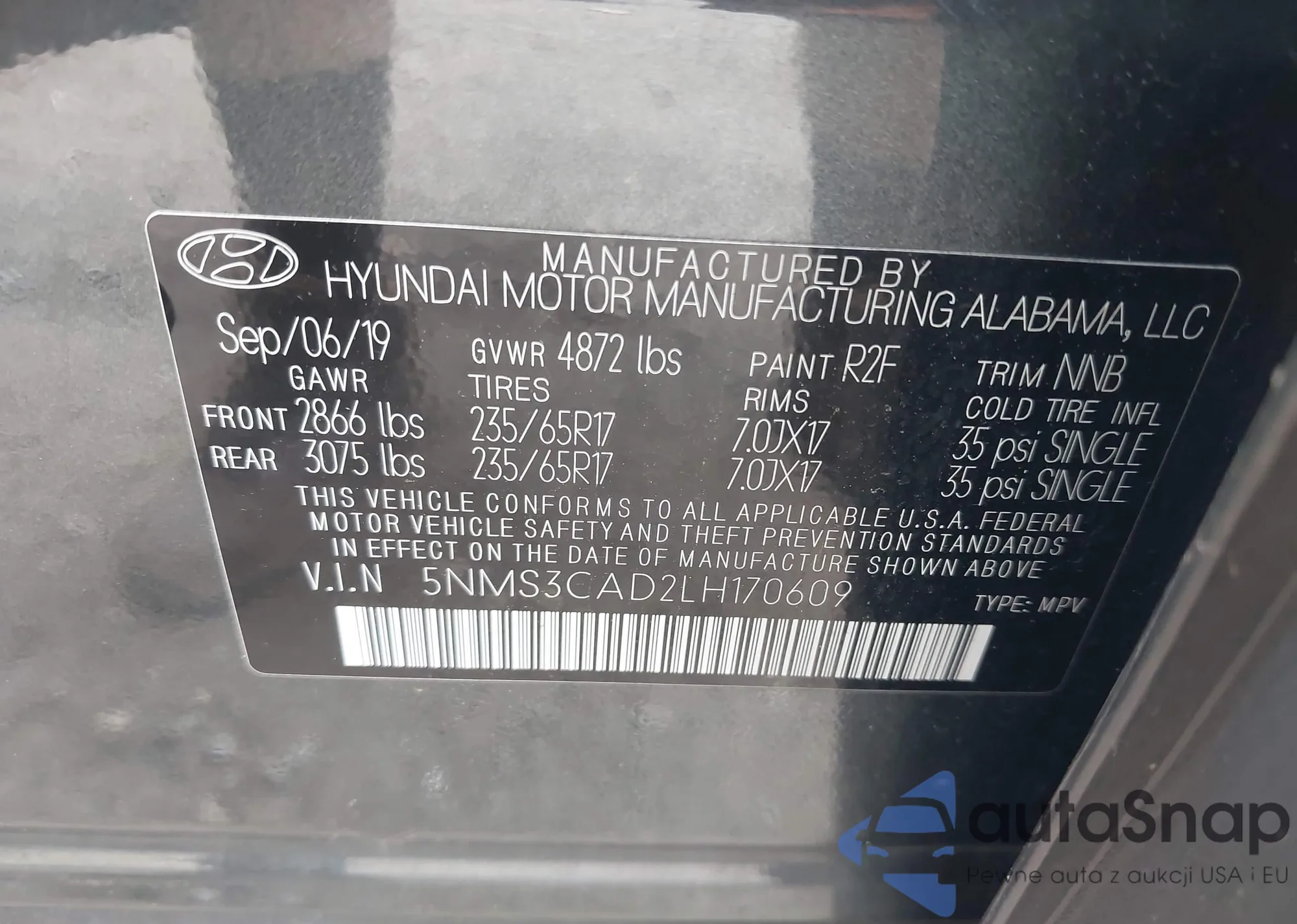 • VIN 5NPEB4AC7BH204557