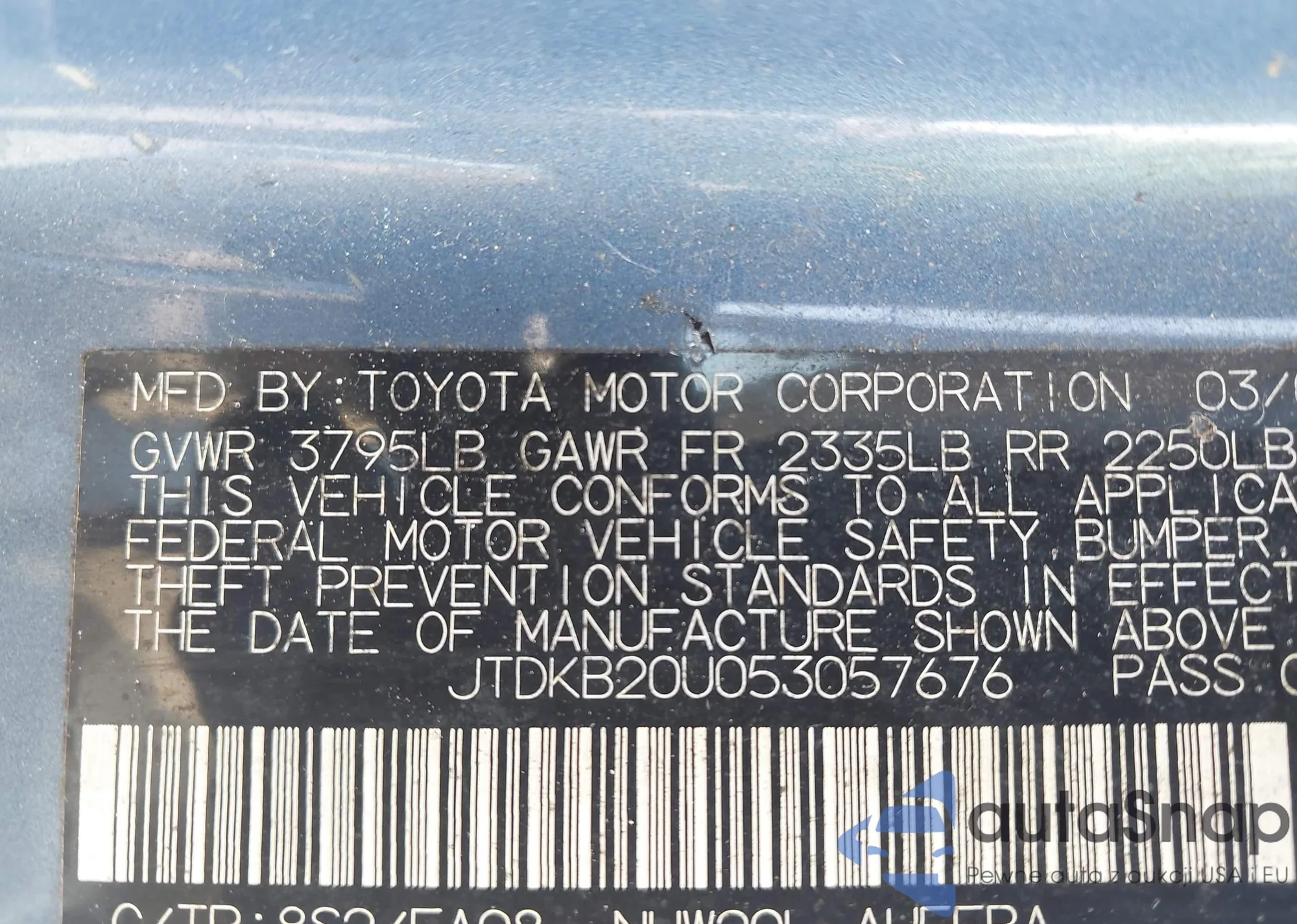 LOT: 42932964 VIN: JTDKB20U053057676