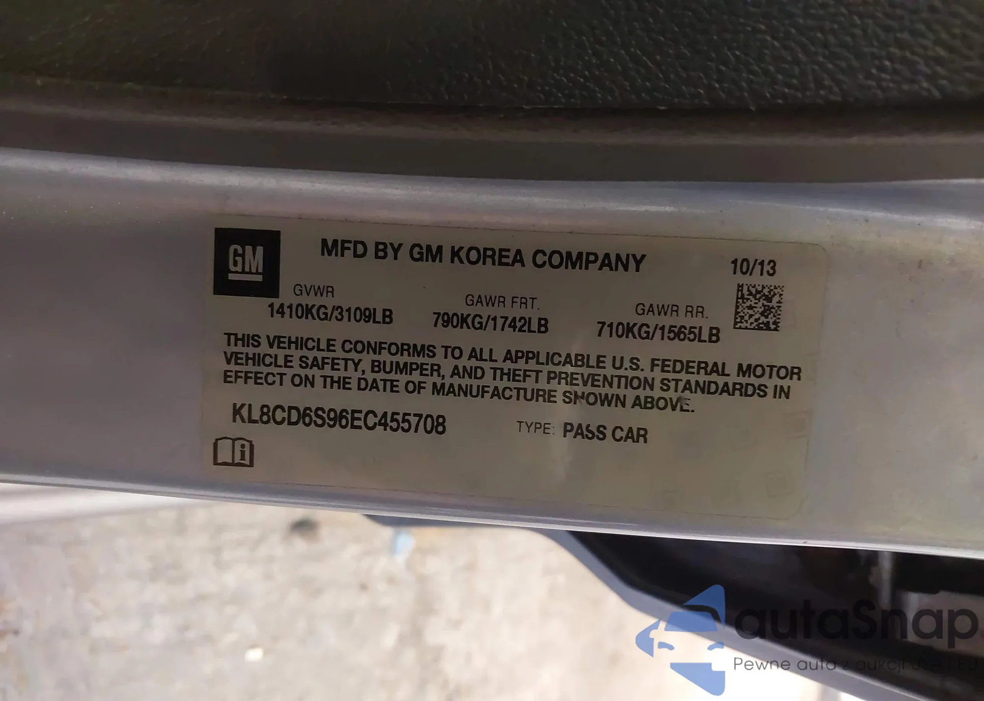 • VIN KL8CD6S96EC455708