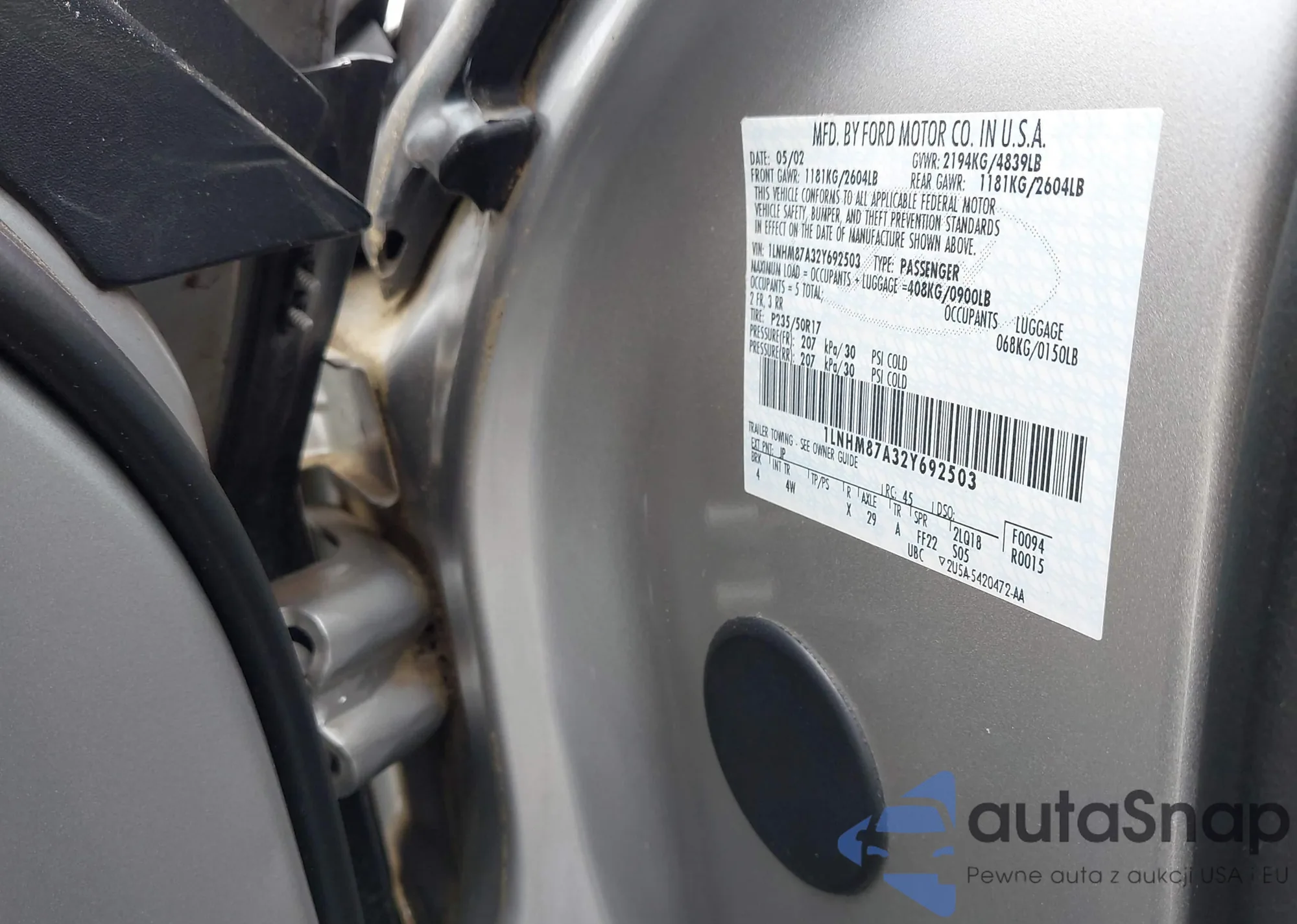 • VIN 1LNHM87A32Y692503