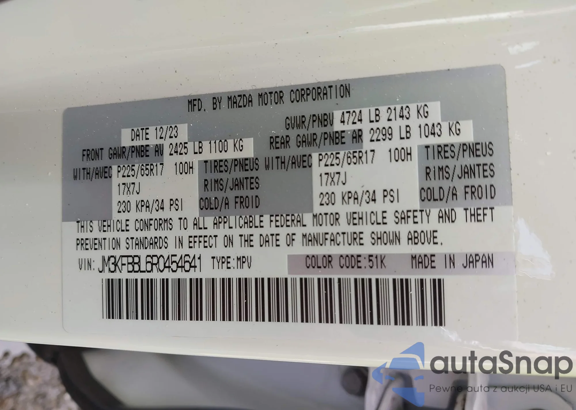 LOT: 42616379 VIN: JM3KFBBL6R0454641