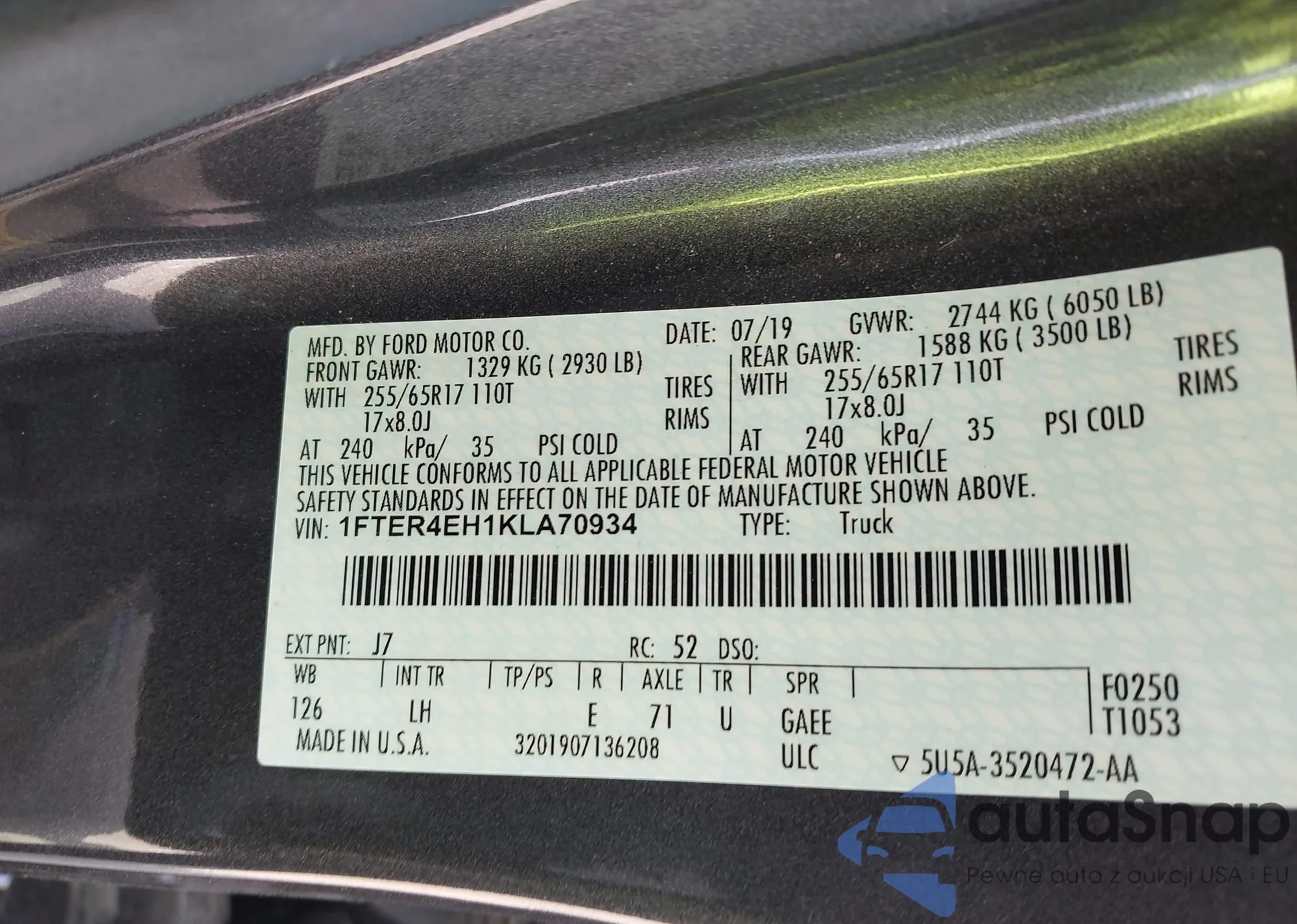 • VIN 1FTMF1CB1LKD30726