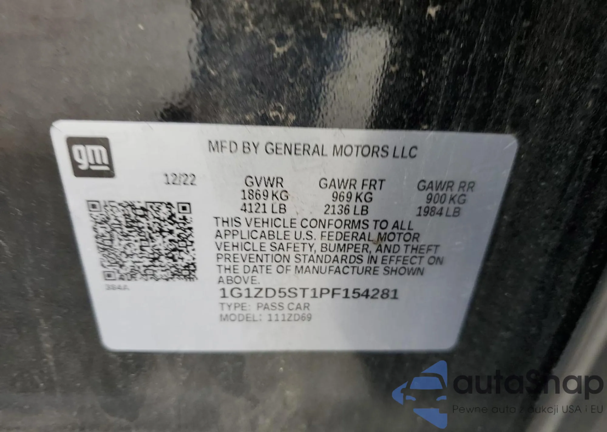 LOT: 67236895 VIN: 1G1ZD5ST1PF154281