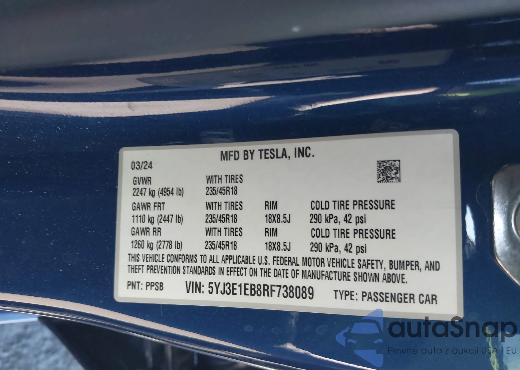 • VIN 5YJ3E1EB7RF800873