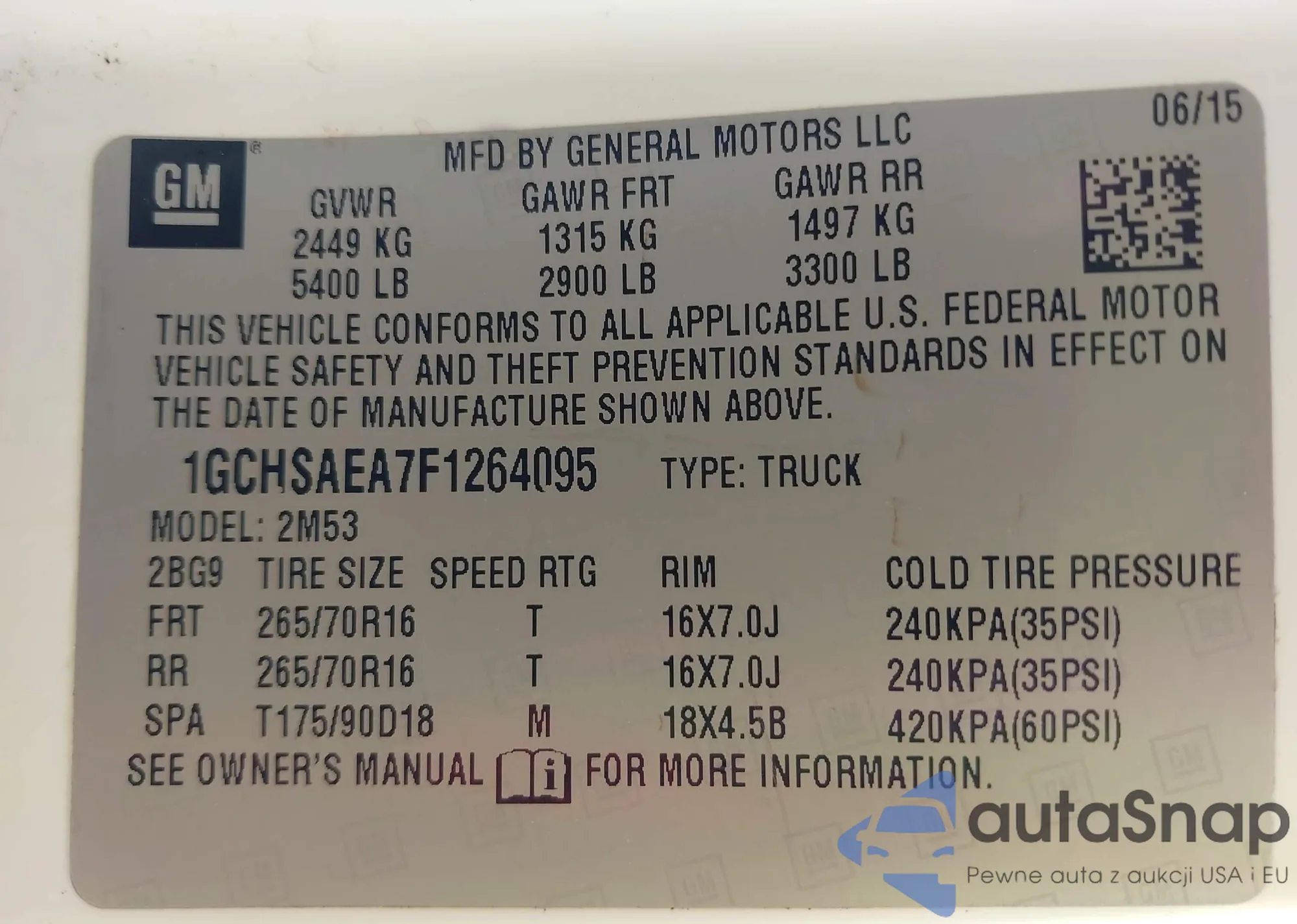 LOT: 42814492 VIN: 1GCHSAEA7F1264095