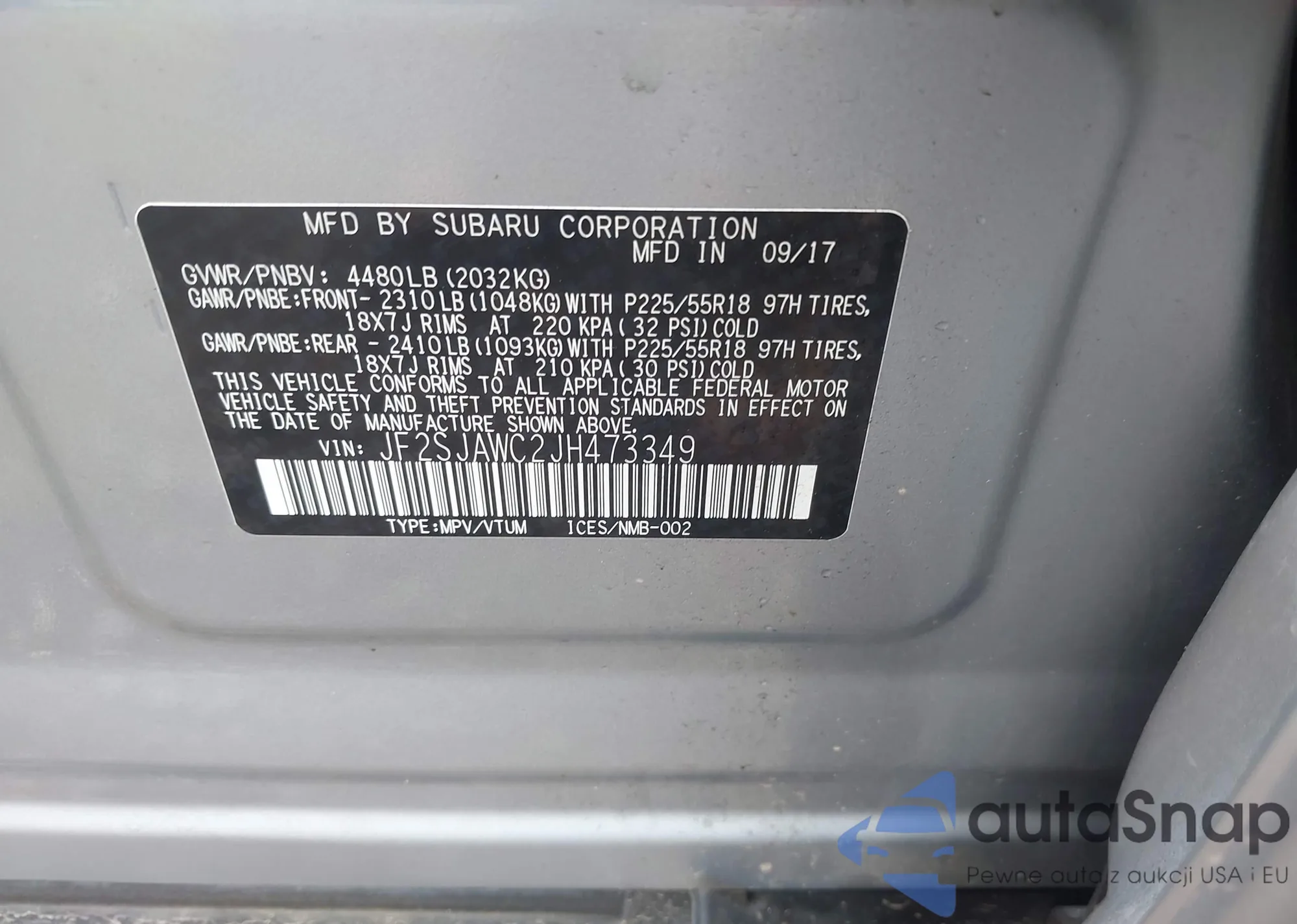 • VIN JF2SJAWC2JH473349