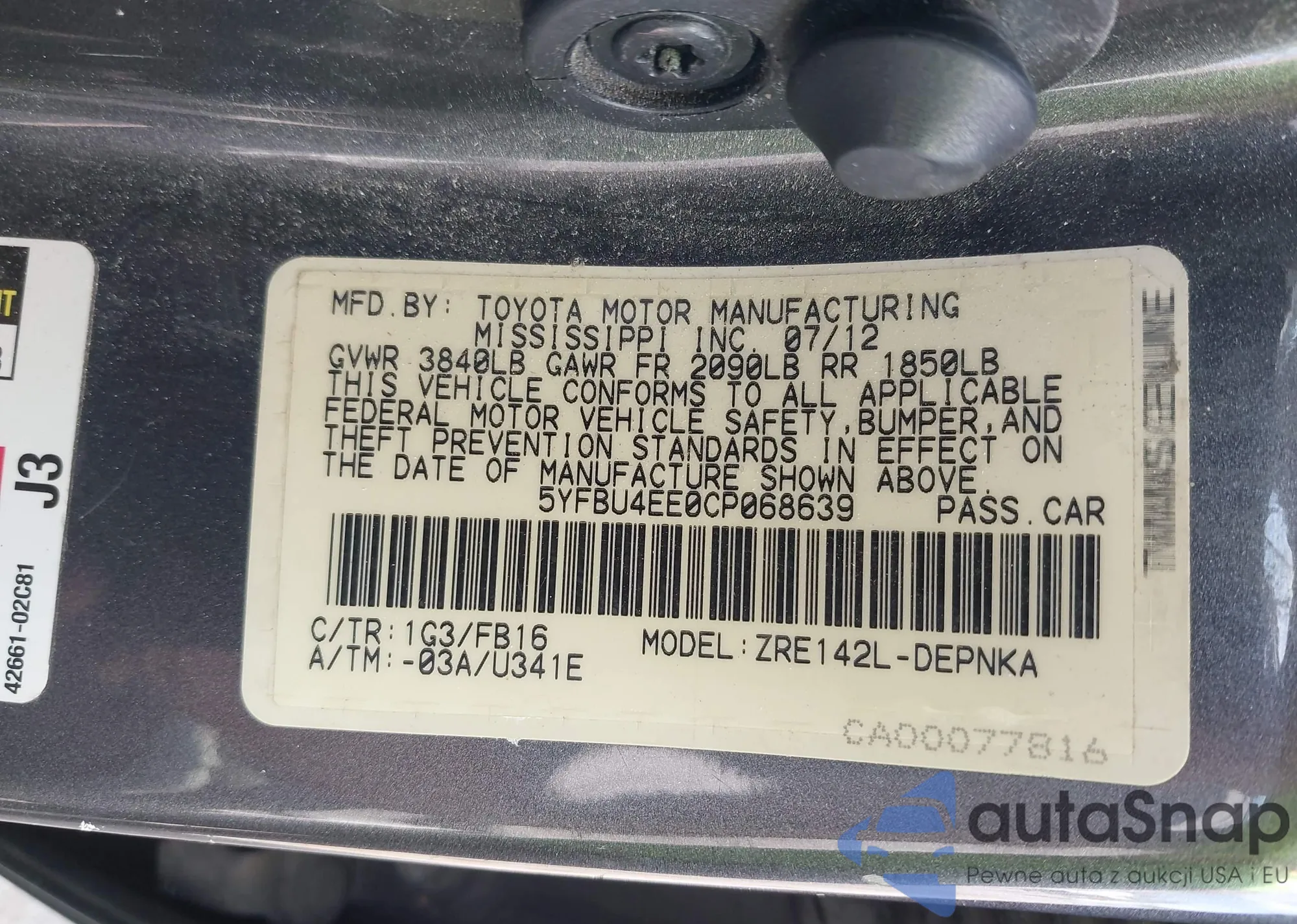 LOT: 41892843 VIN: 5YFBU4EE0CP068639