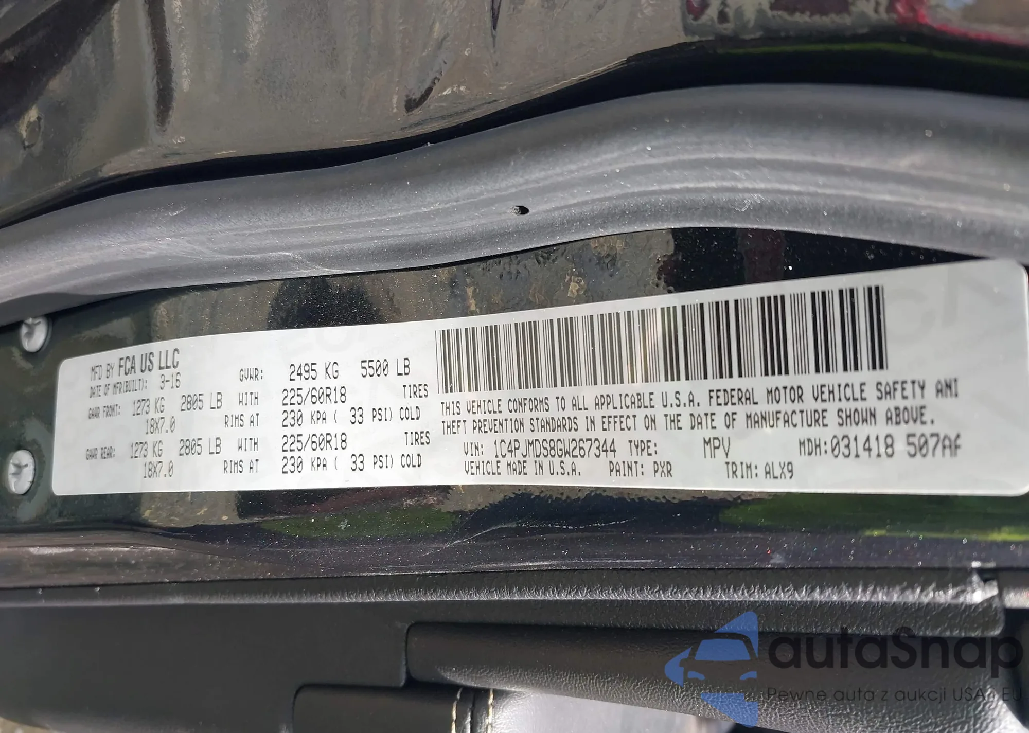 LOT: 42692261 VIN: 1C4PJMDS8GW267344