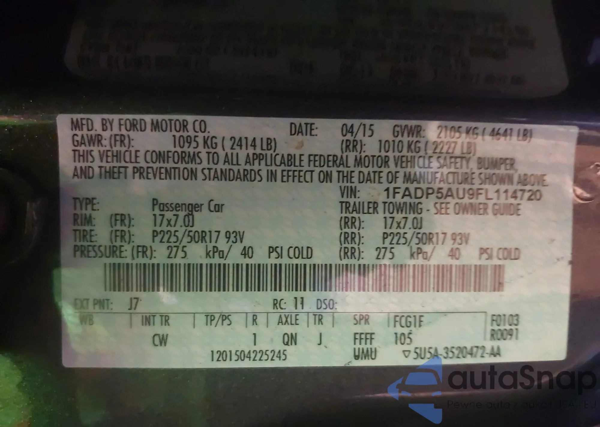 • VIN KNAFW4A34C5622517