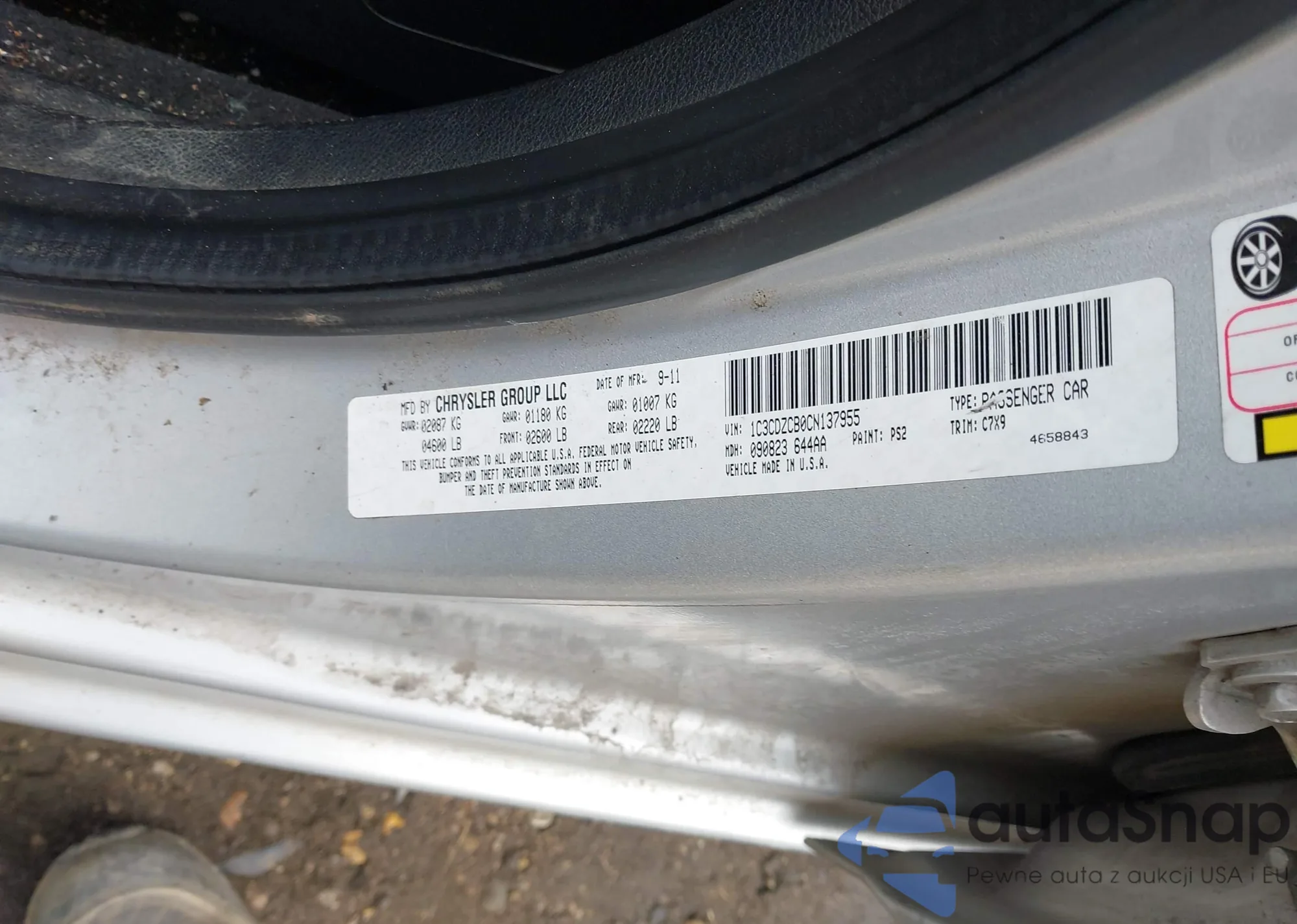 LOT: 41534277 VIN: 1C3CDZCB0CN137955