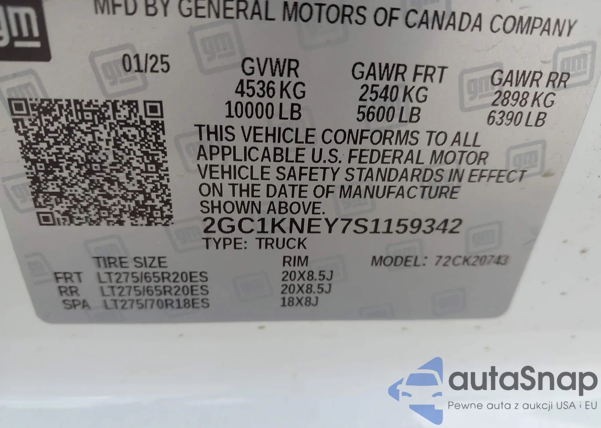 • VIN 2GC1KNEY7S1159342