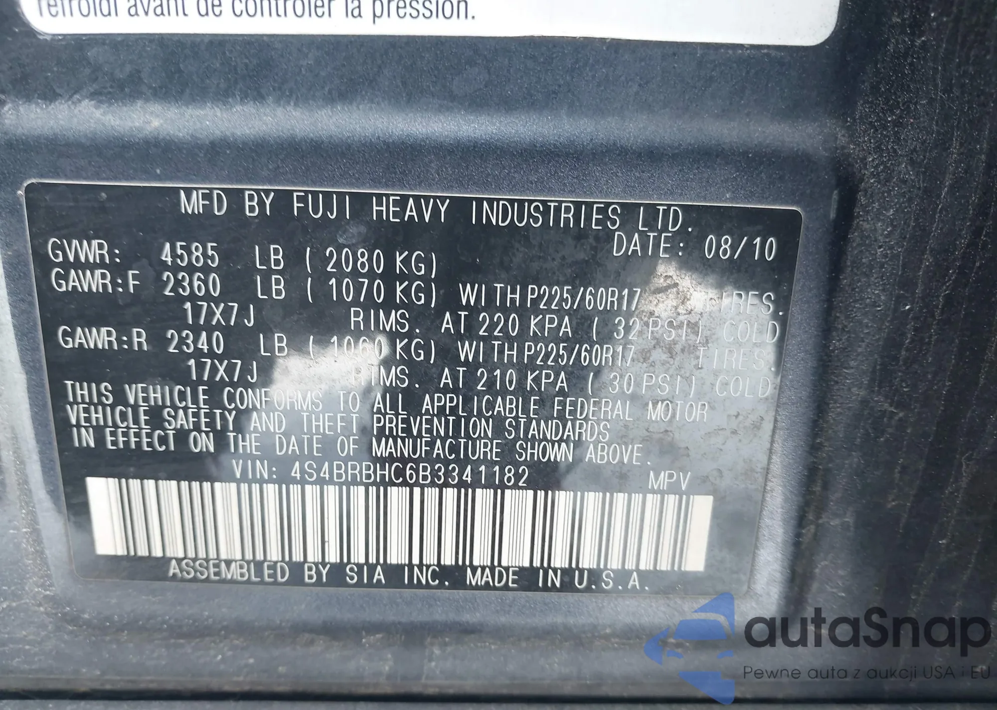 • VIN 4S4BRBHC6B3341182