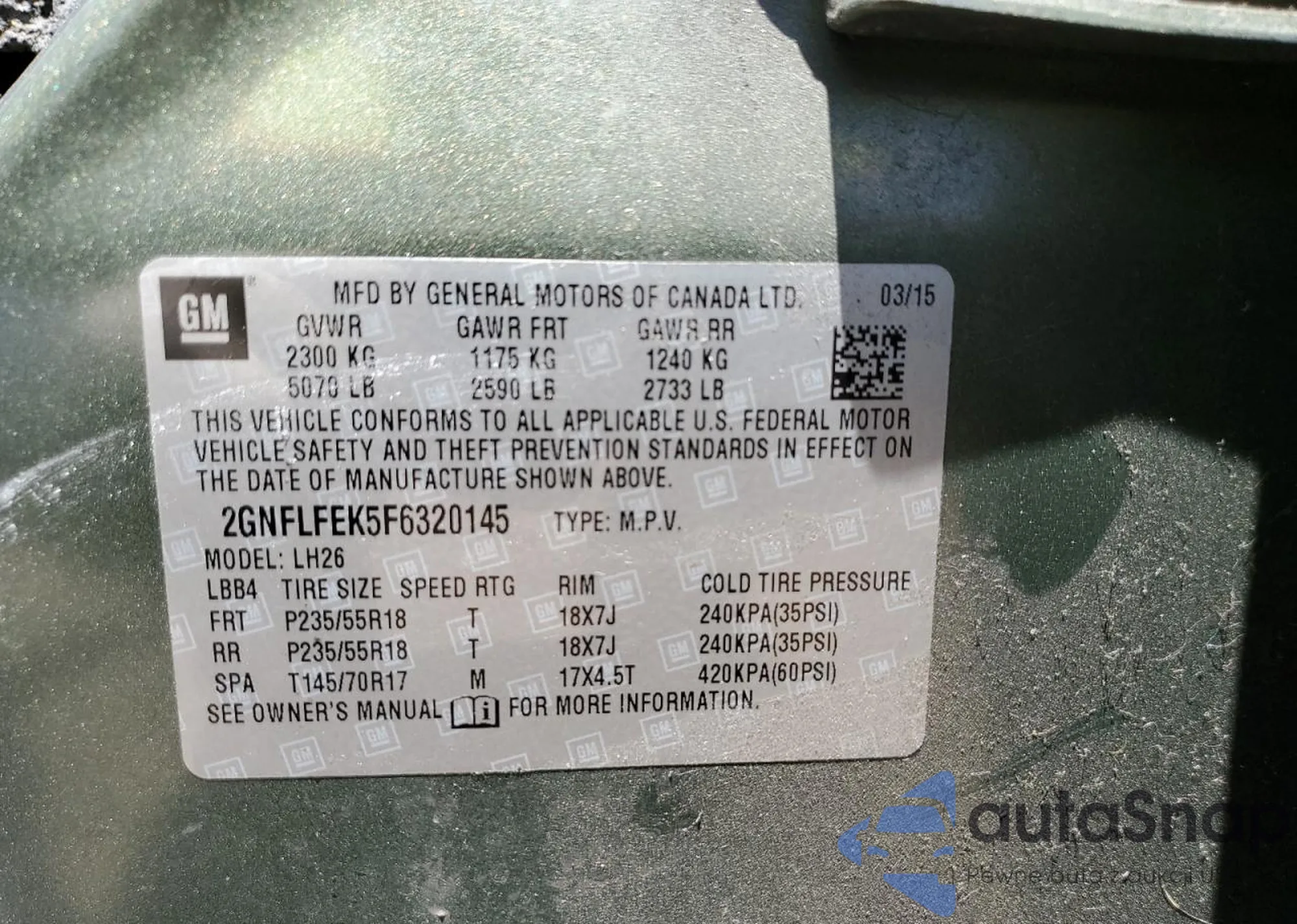 • VIN 2GNFLFEK5F6320145