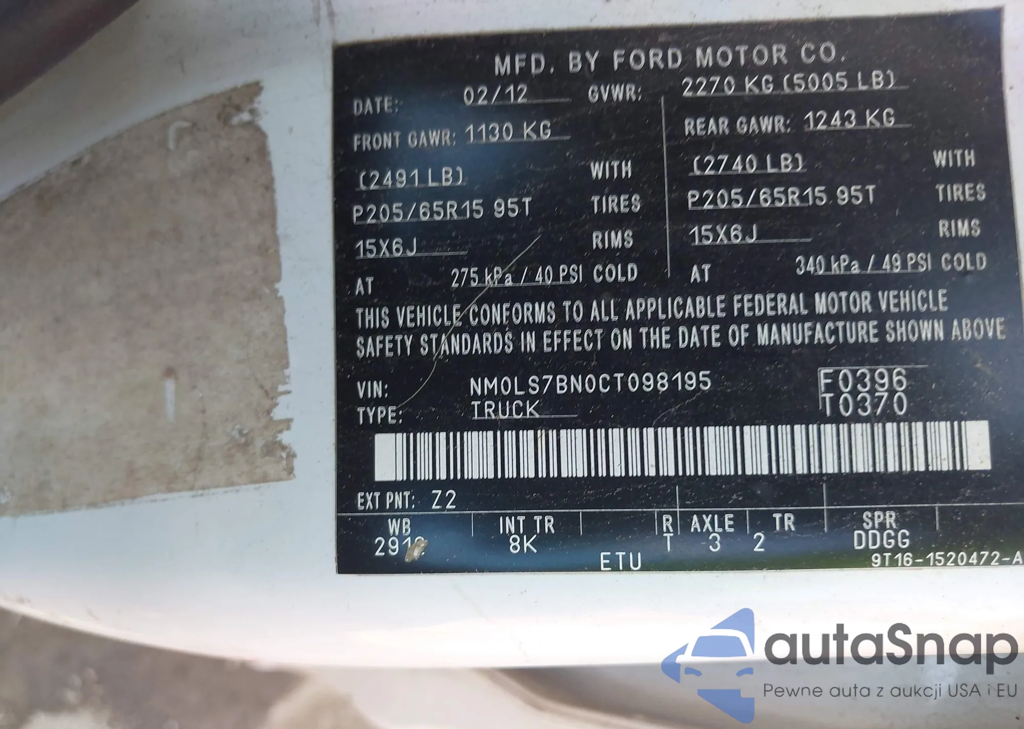 • VIN 1FT7W2B65NEC60608
