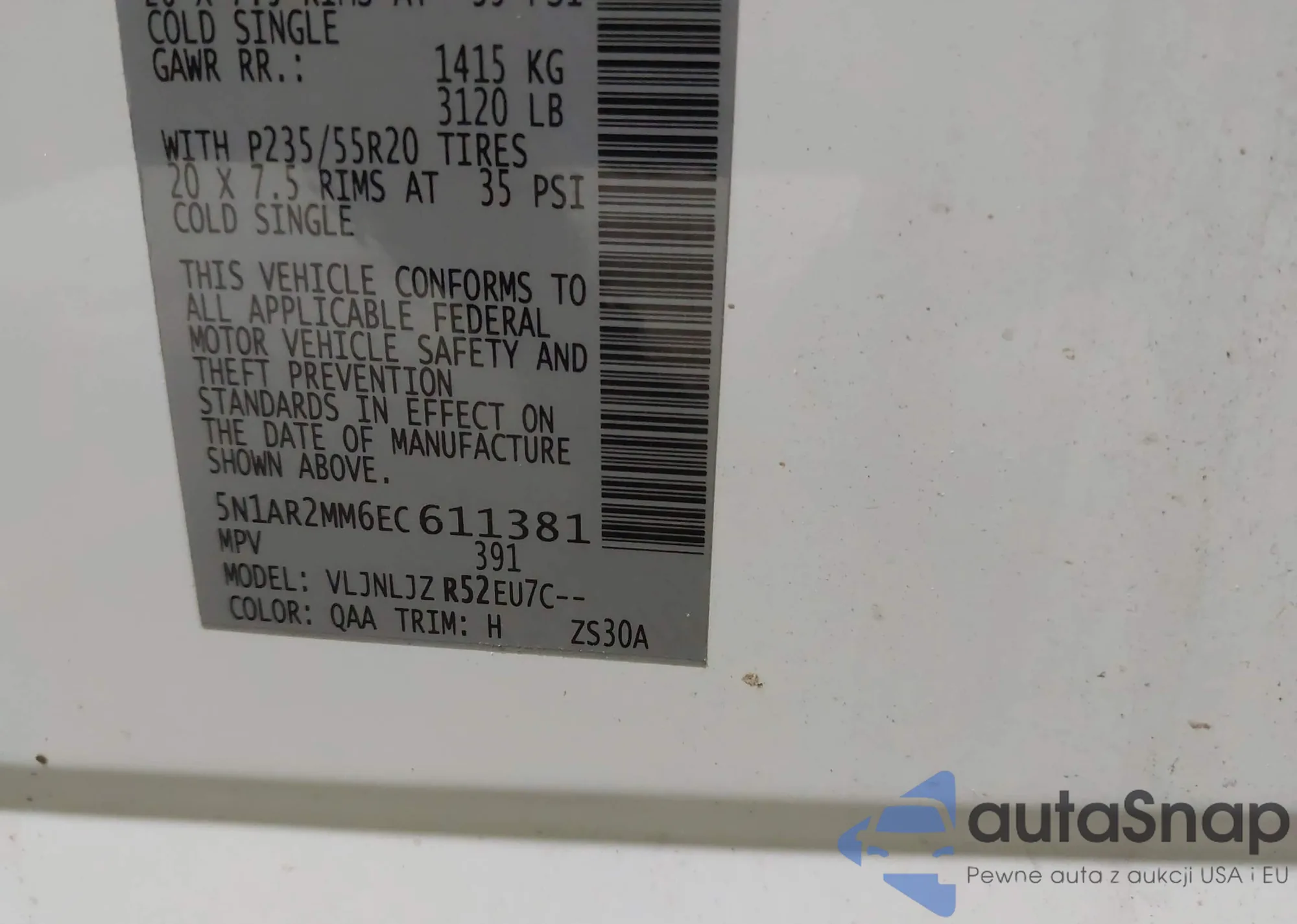 • VIN 5N1AR2MM6EC611381