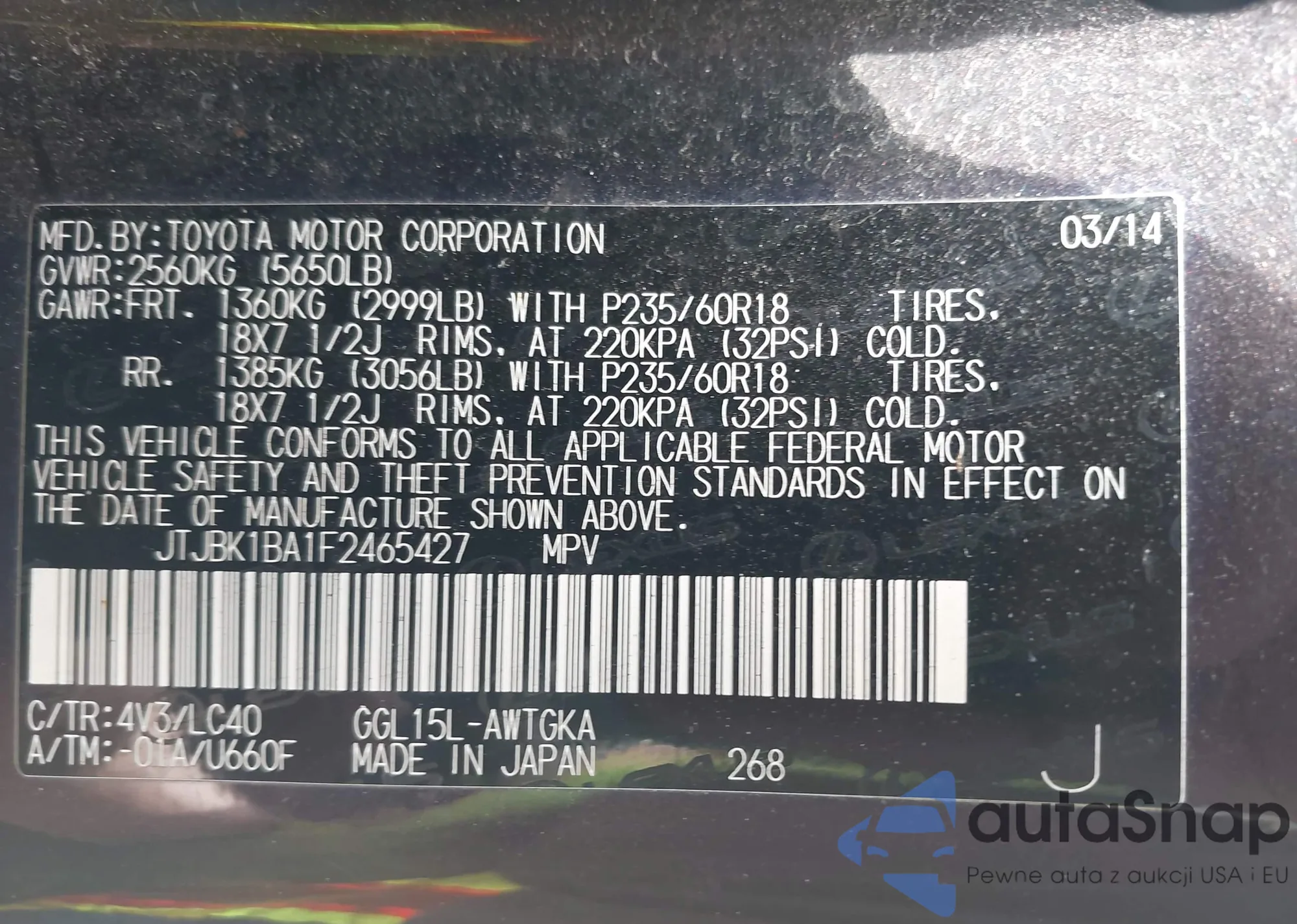 • VIN JTJBK1BA1F2465427