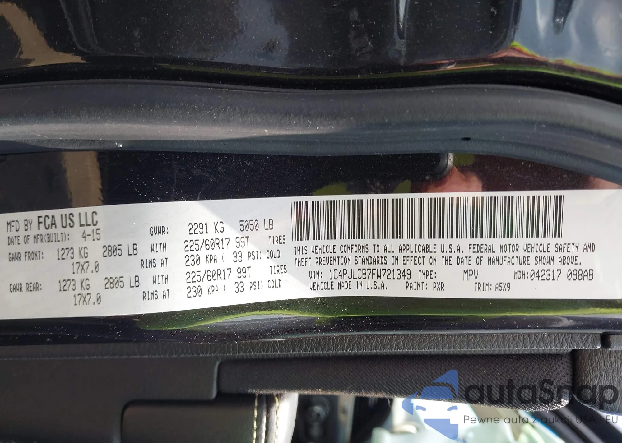 LOT: 42833619 VIN: 1C4PJLCB7FW721349