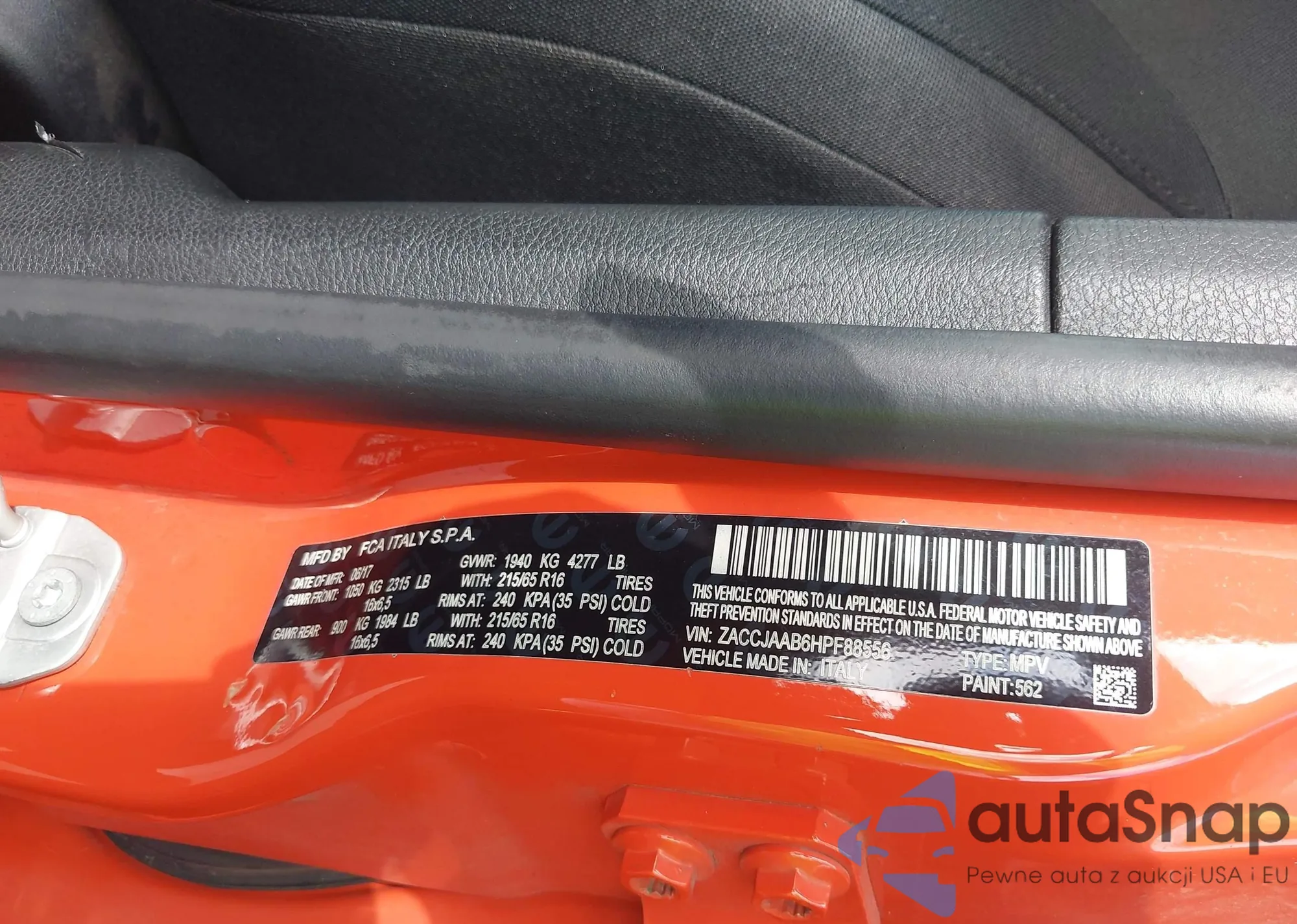 • VIN ZACCJAAB6HPF88556