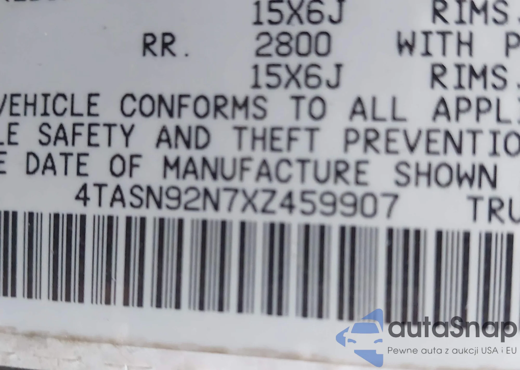 • VIN 4TASN92N7XZ459907