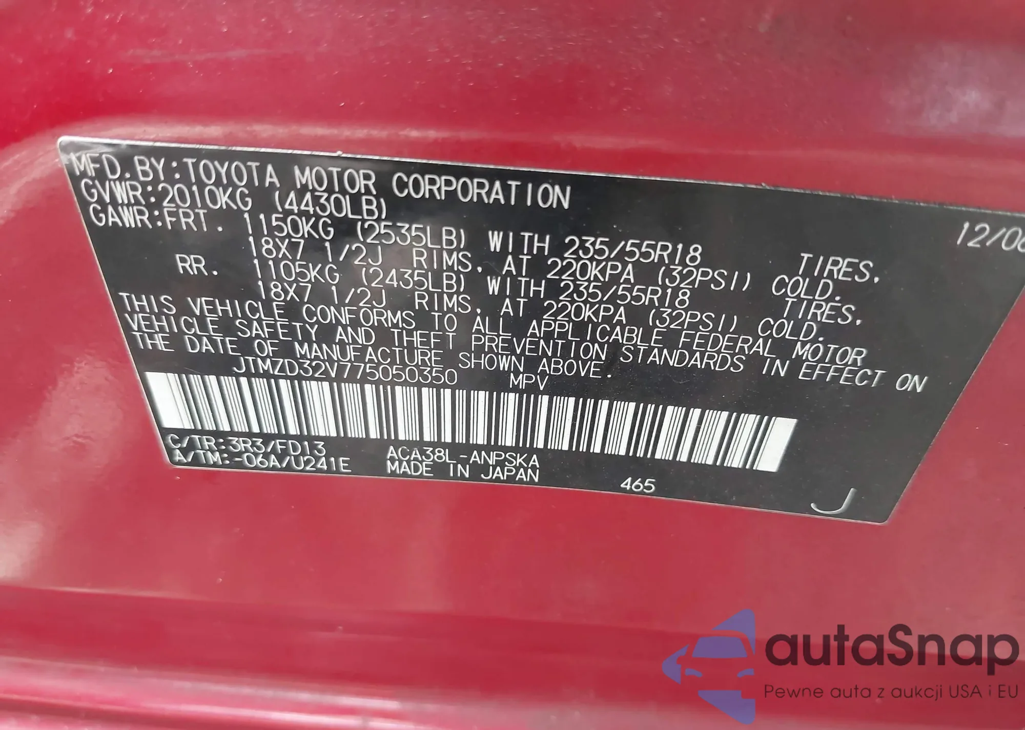 LOT: 42816969 VIN: JTMZD32V775050350