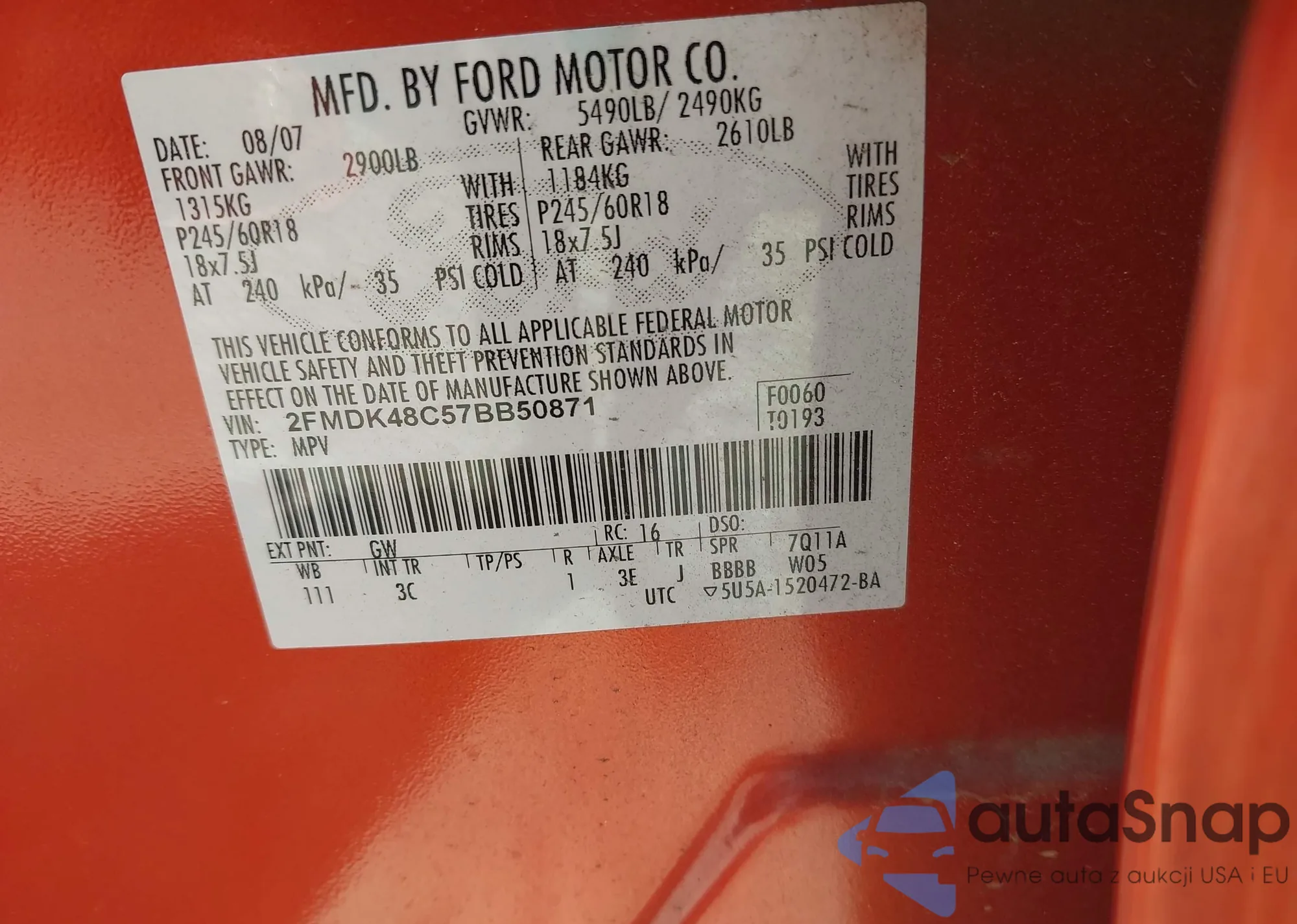 LOT: 42899652 VIN: 1G1ZB5E07CF247100