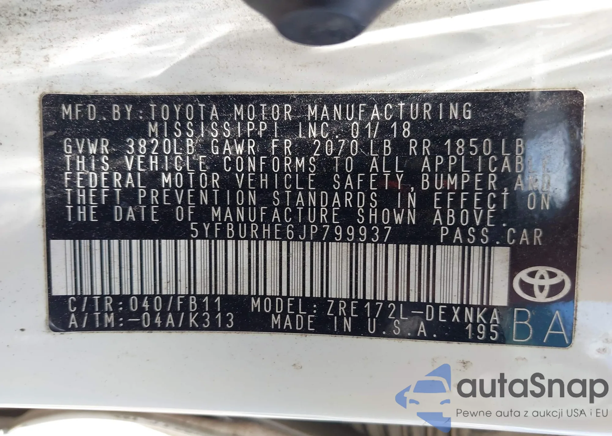• VIN 5YFBURHE6JP799937