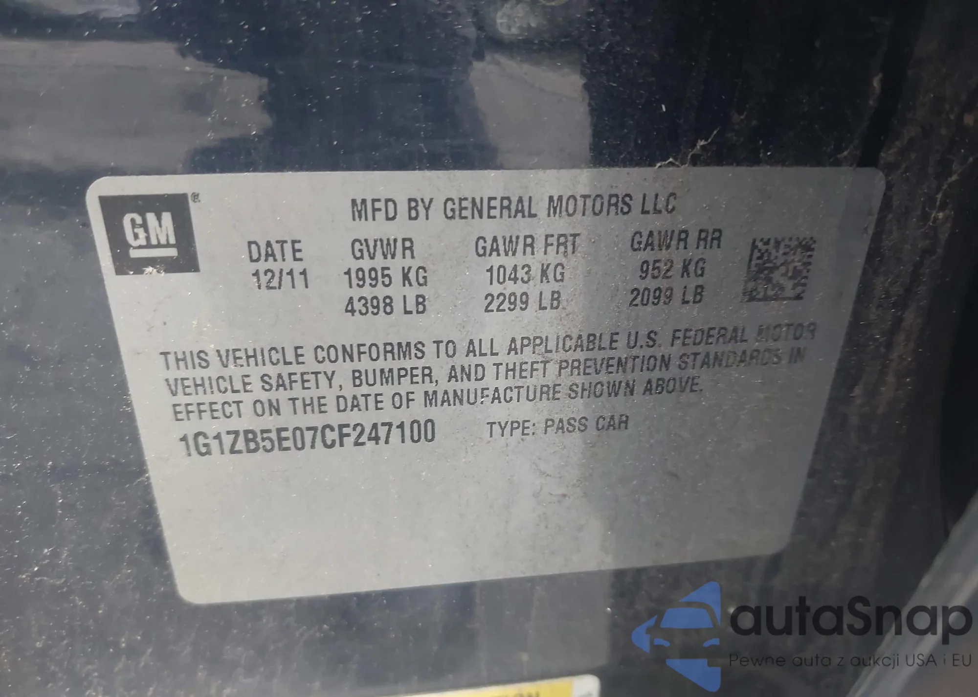 • VIN 1G1ZB5E07CF247100