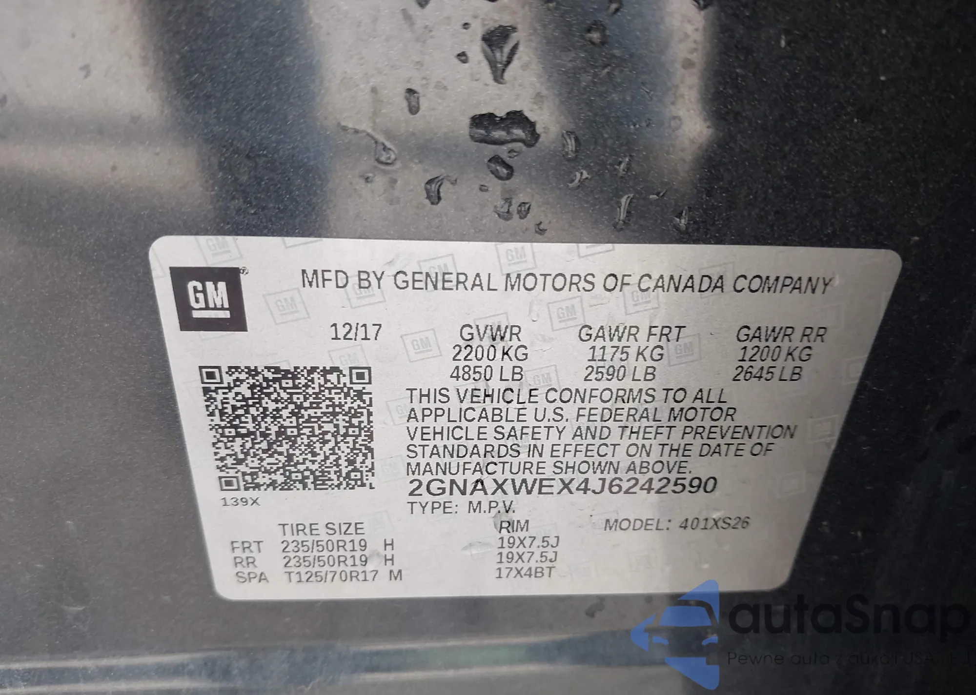 LOT: 42128463 VIN: 2GNAXWEX4J6242590