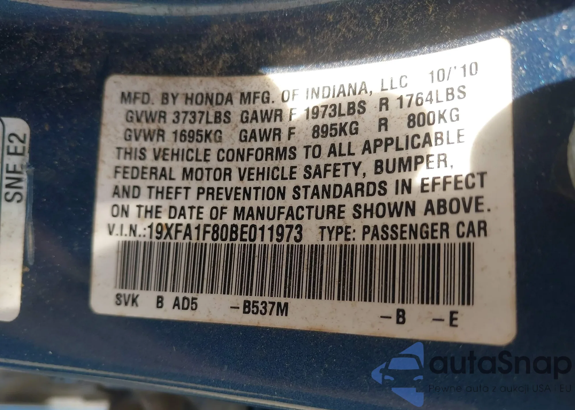 • VIN 19XFA1F80BE011973