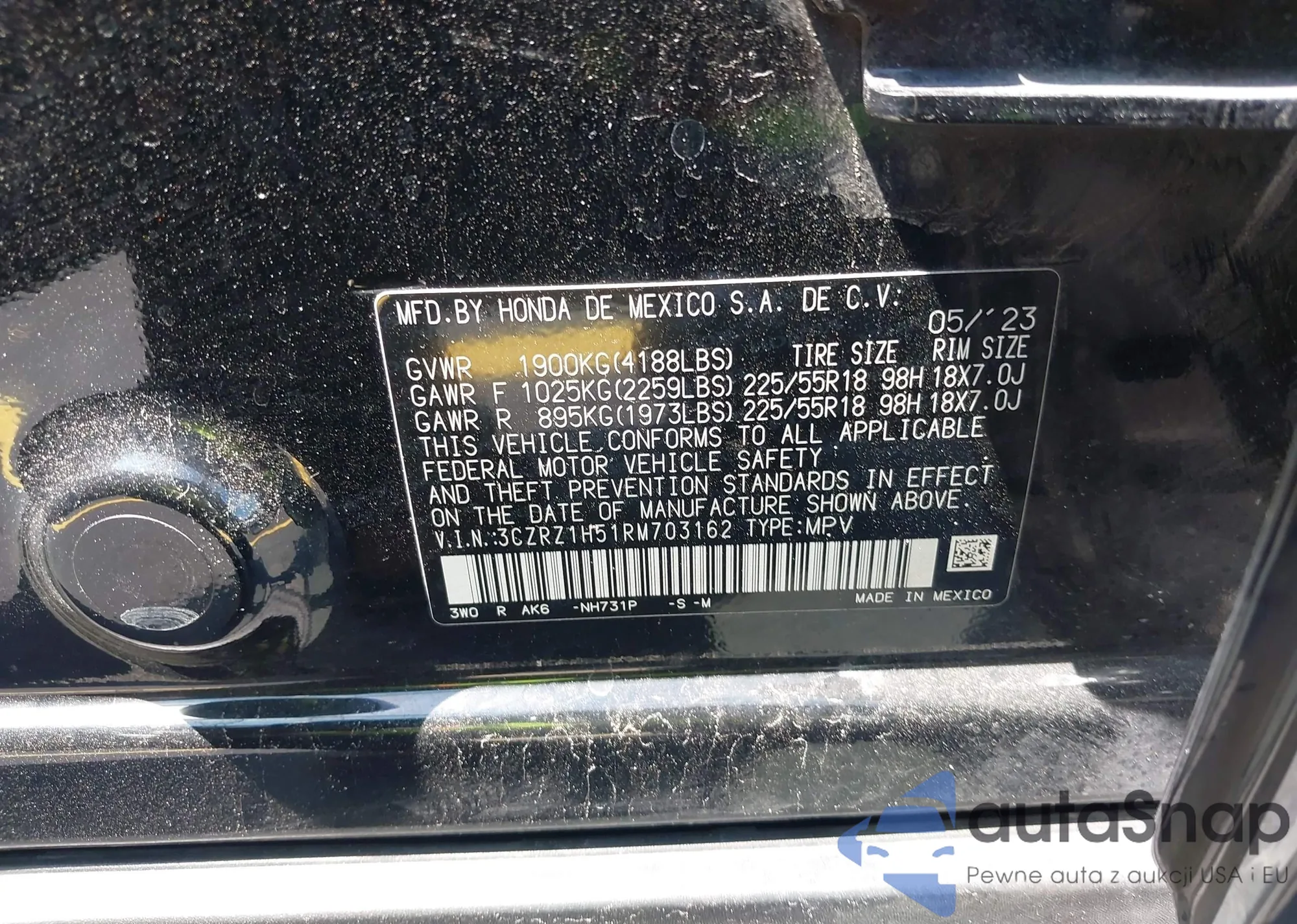 • VIN 5FNYF8H62PB043341