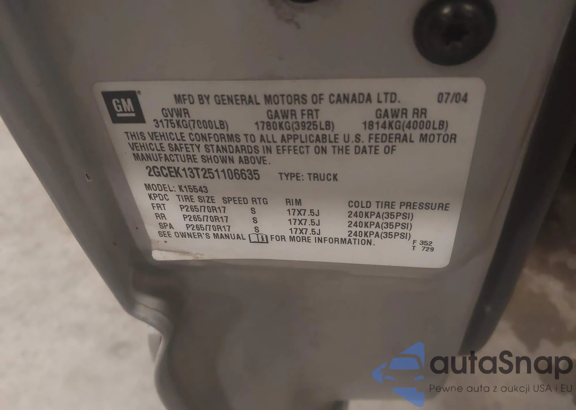 • VIN 2GCEK13T251106635