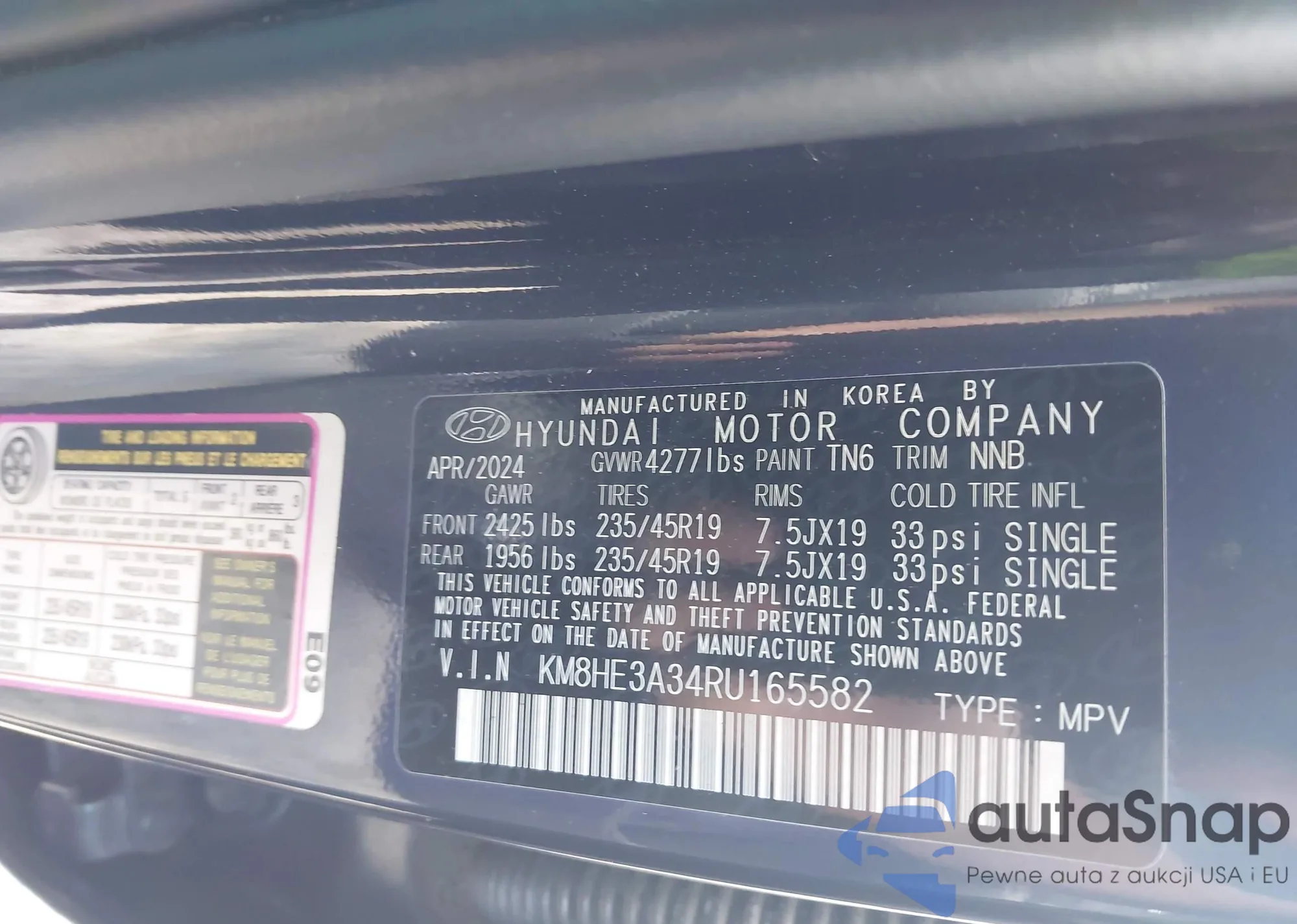 LOT: 42481120 VIN: KM8HE3A34RU165582