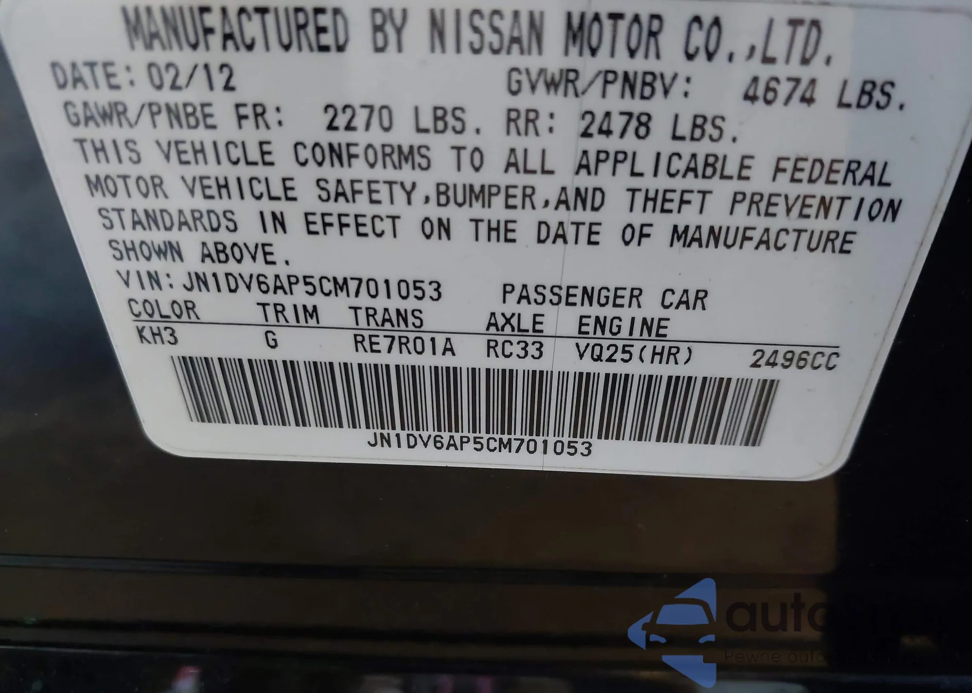 • VIN JN1DV6AP5CM701053