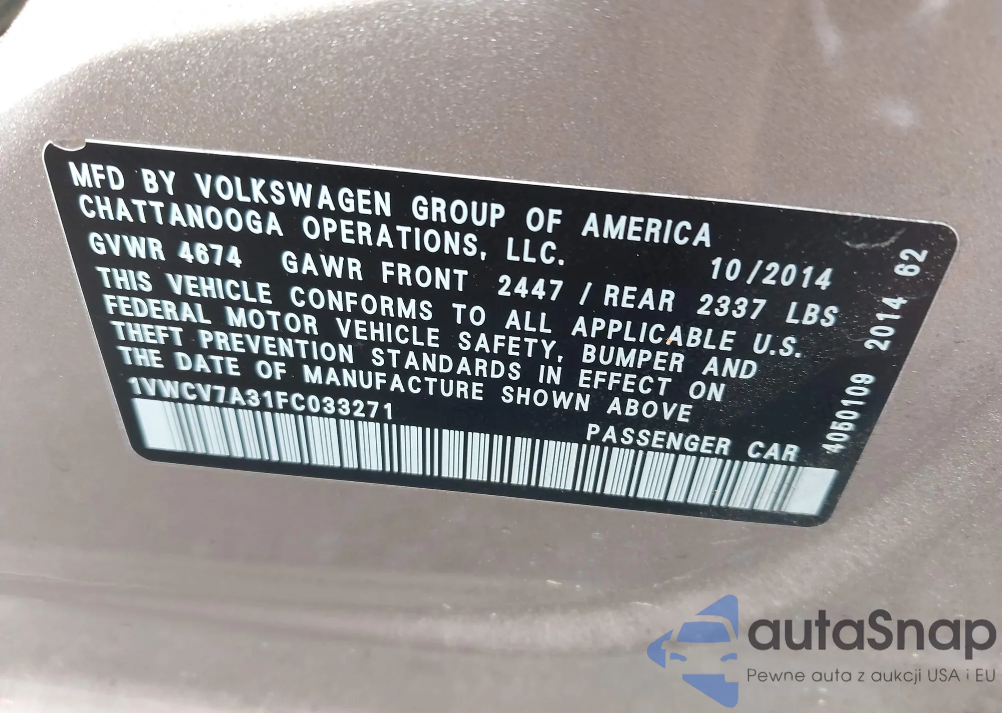LOT: 42405342 VIN: 1VWCV7A31FC033271