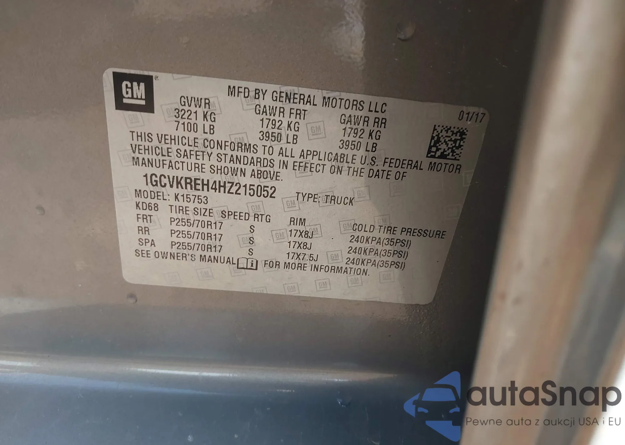 • VIN 1GCVKREH4HZ215052