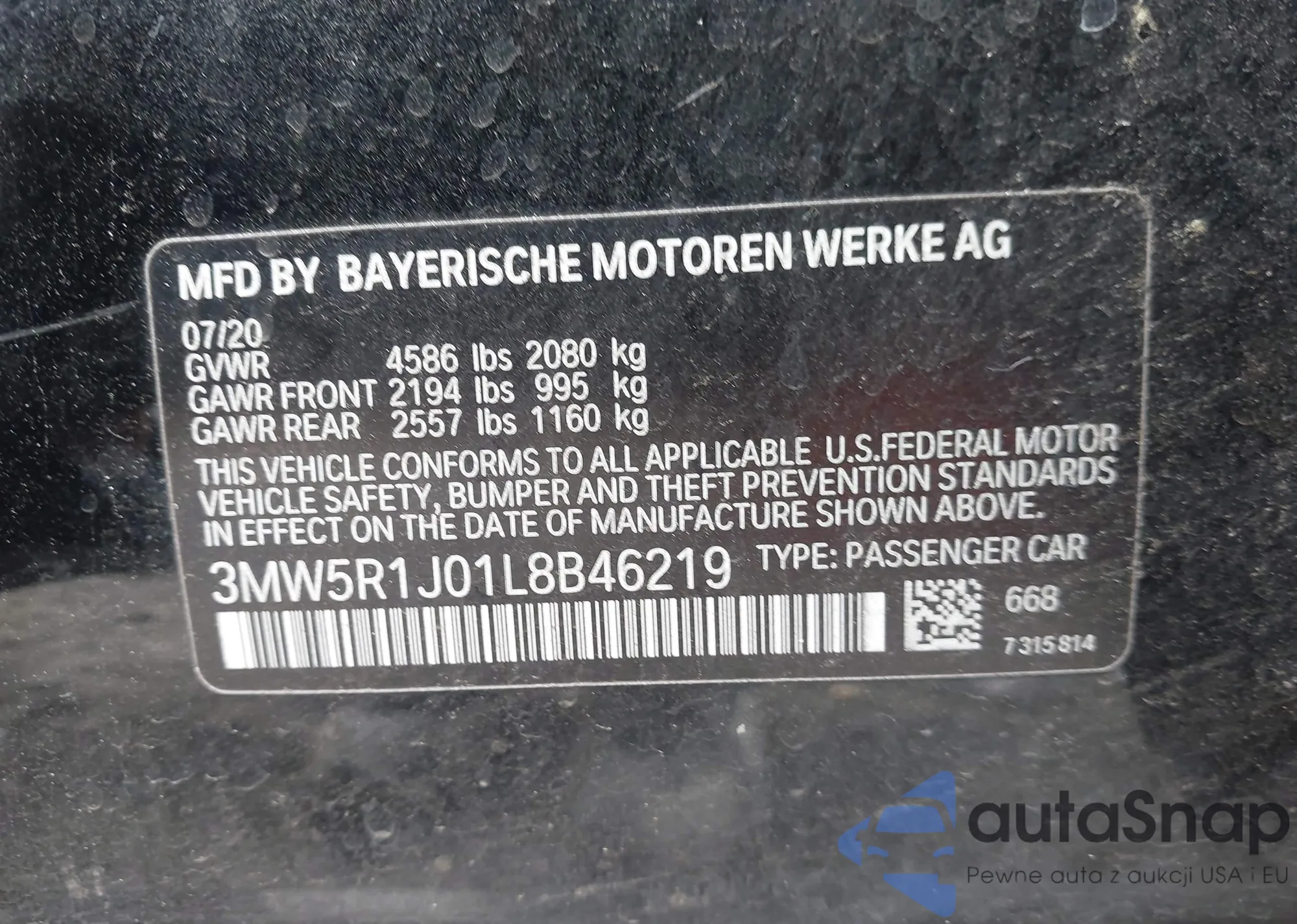 • VIN 3MW5R1J01L8B46219