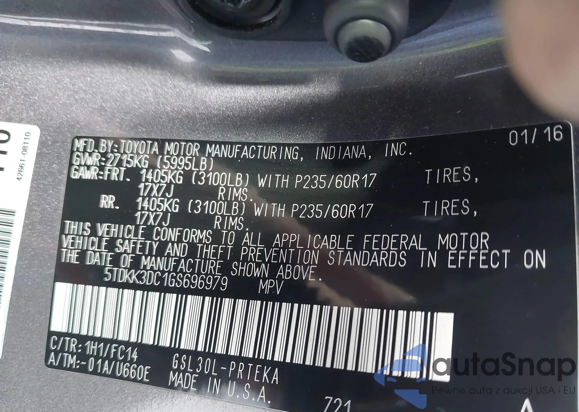 LOT: 42764587 VIN: 5TDKK3DC1GS696979