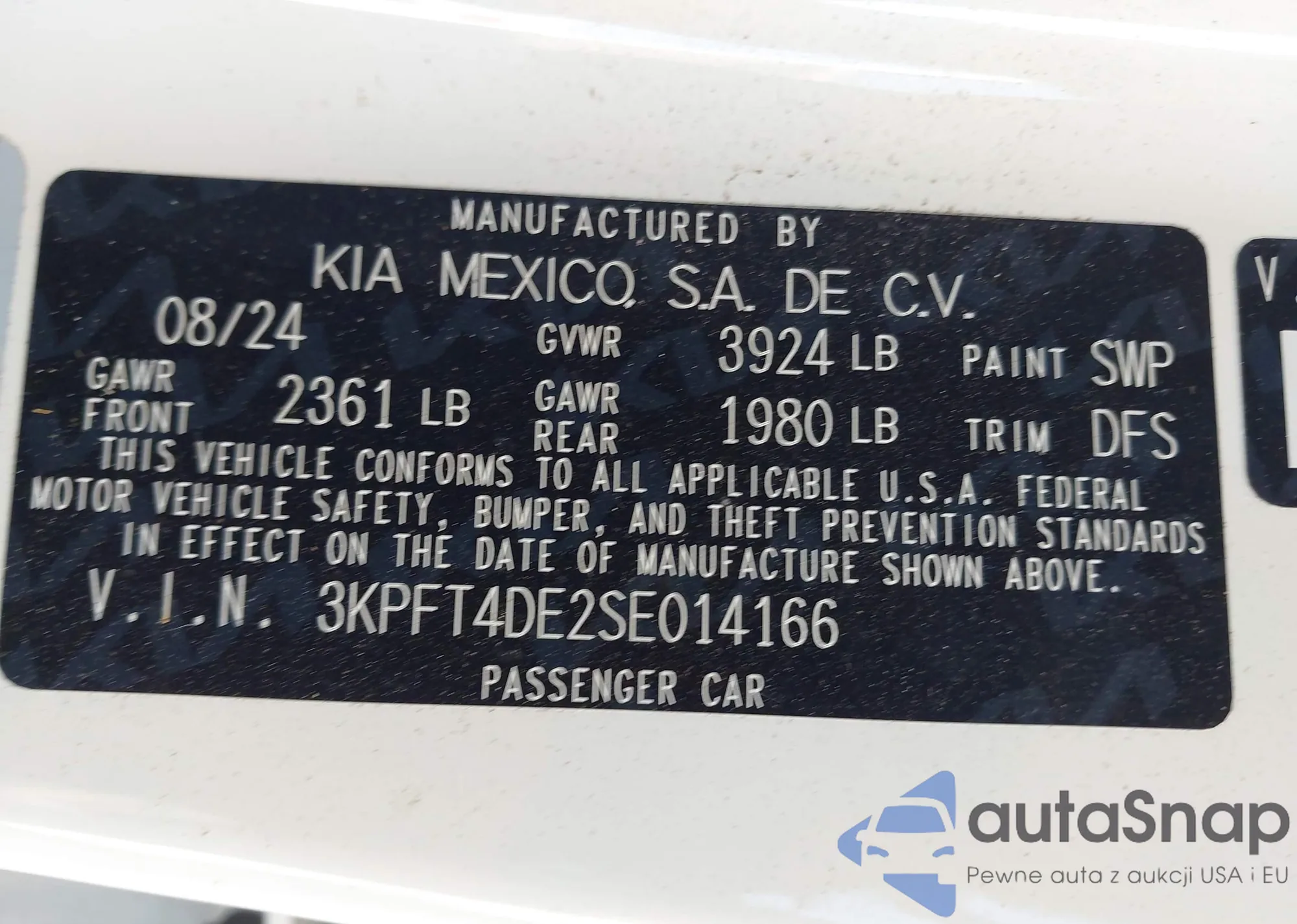 • VIN 3KPFT4DE2SE014166
