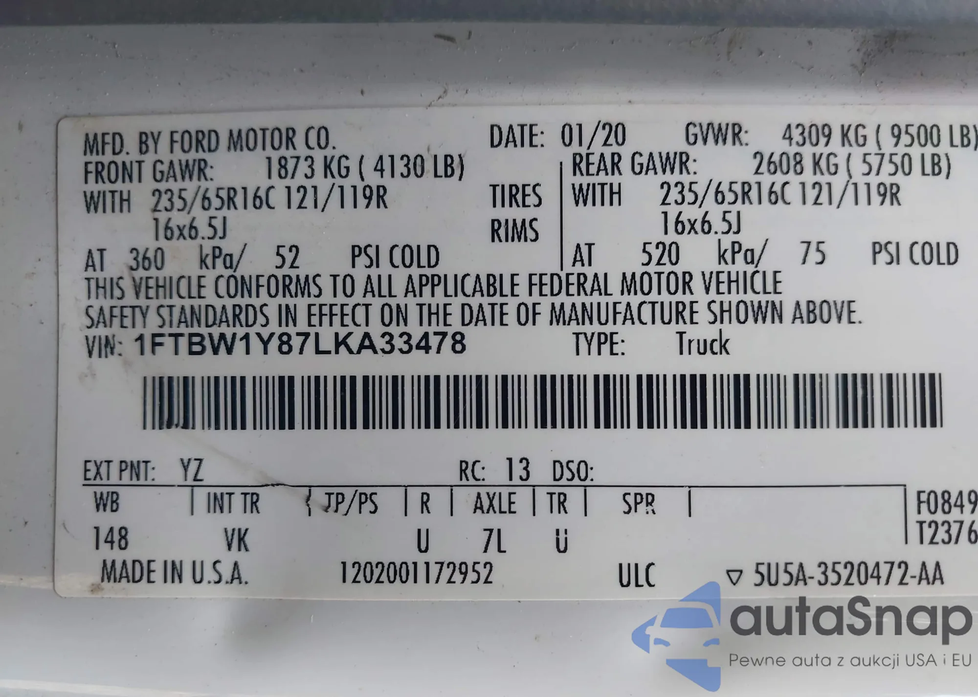 • VIN 1FTBW1Y87LKA33478