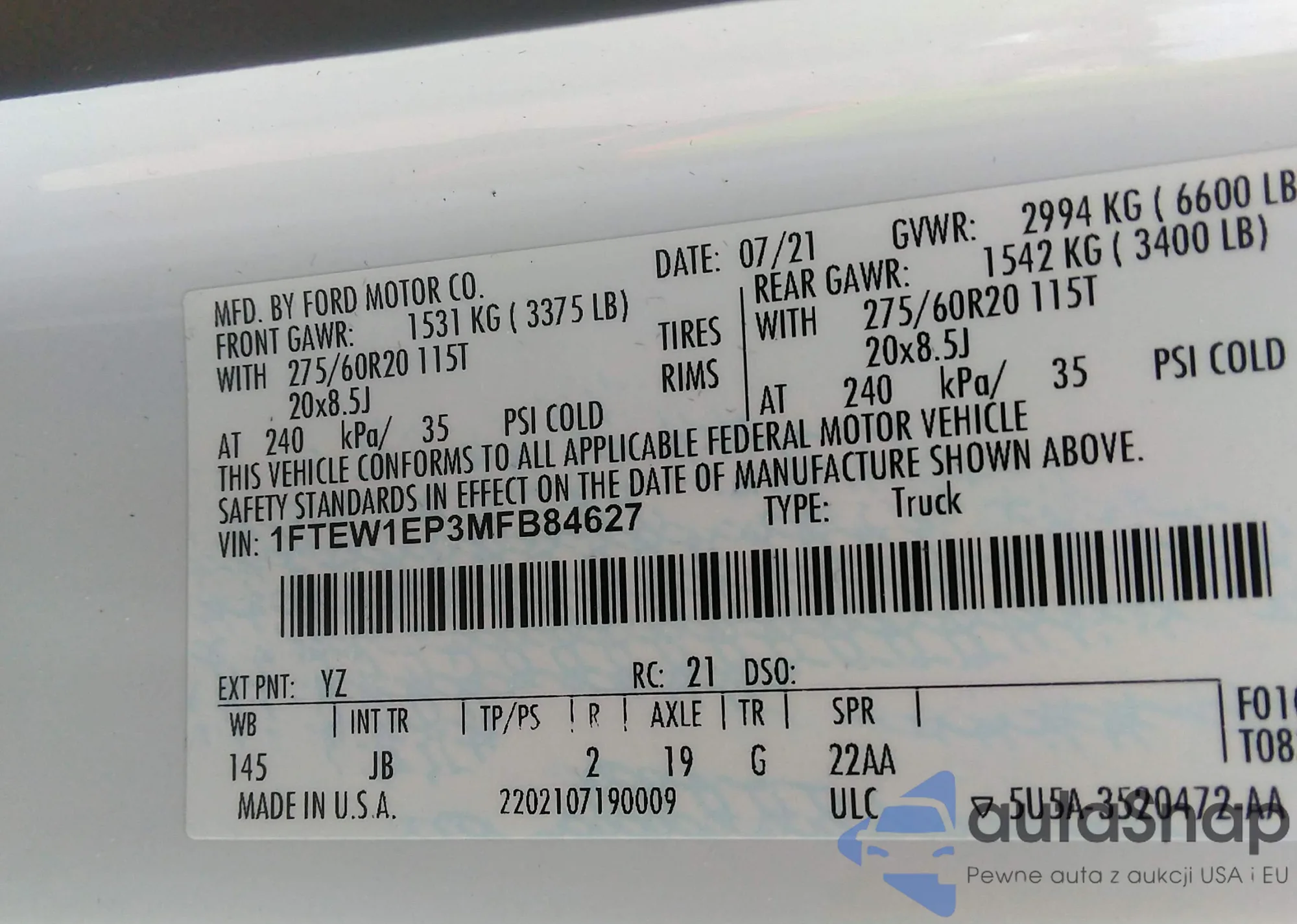 • VIN W1KZF8EB1MA892361