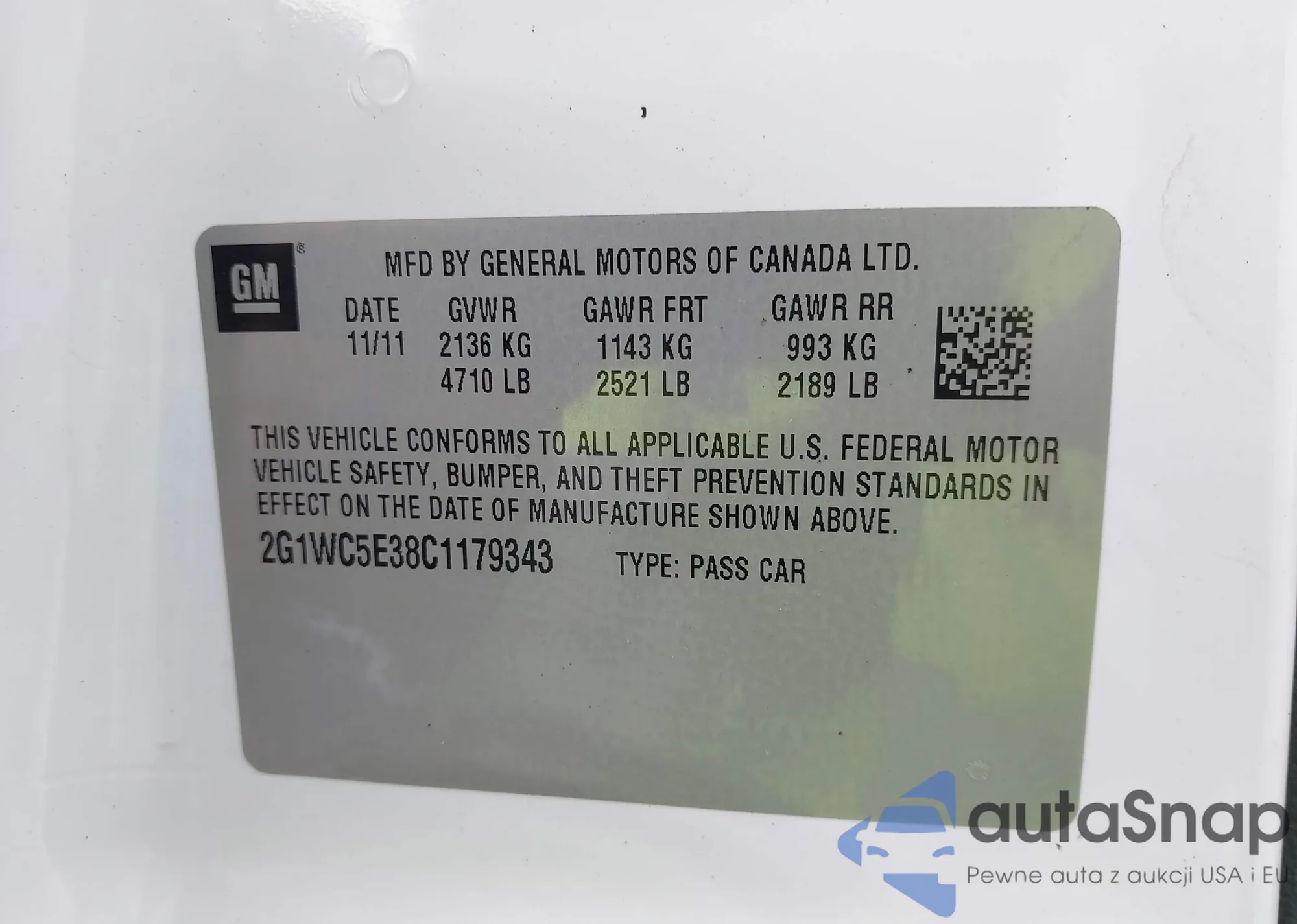 • VIN 2G1WC5E38C1179343