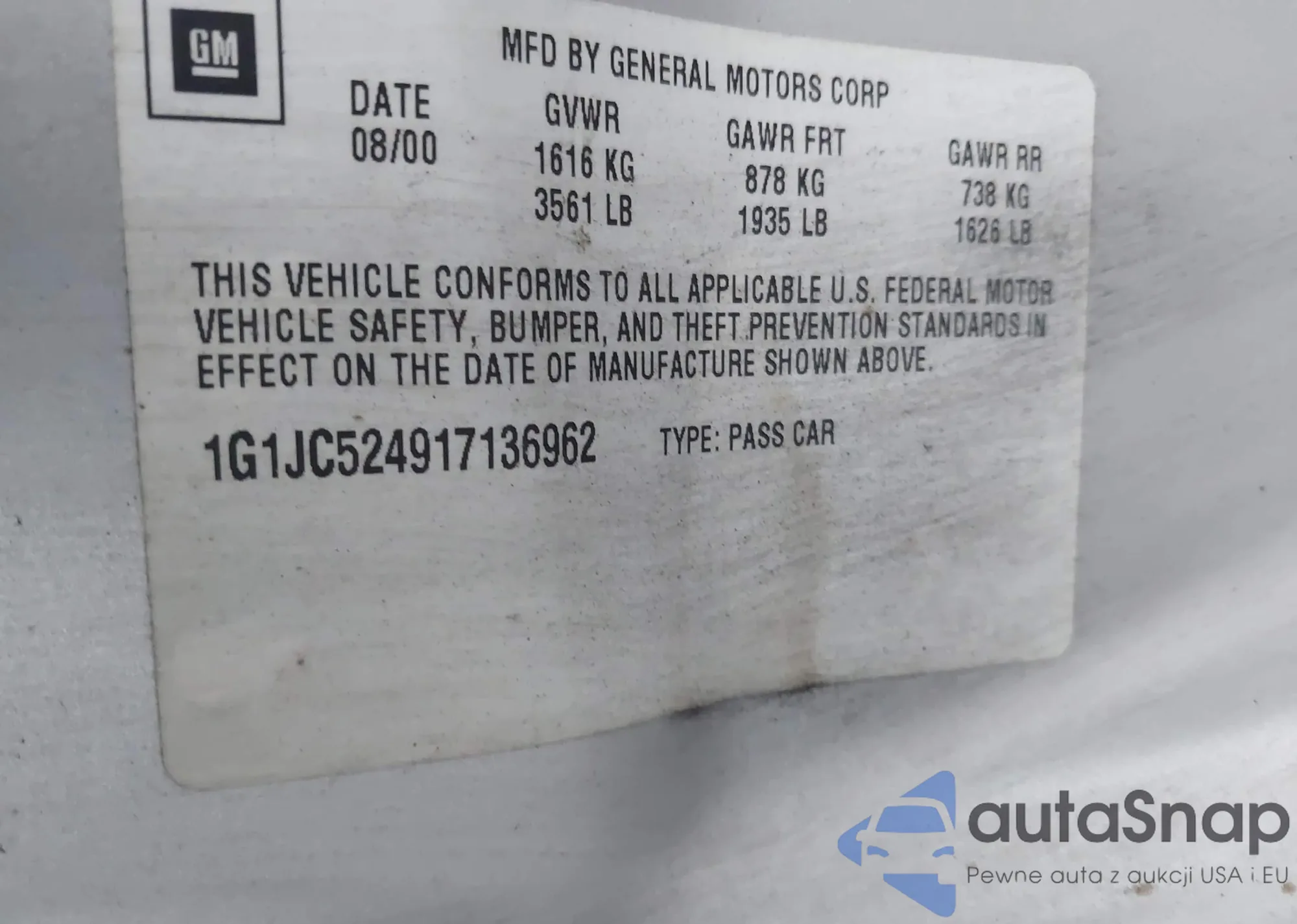 • VIN 1G1JC524917136962