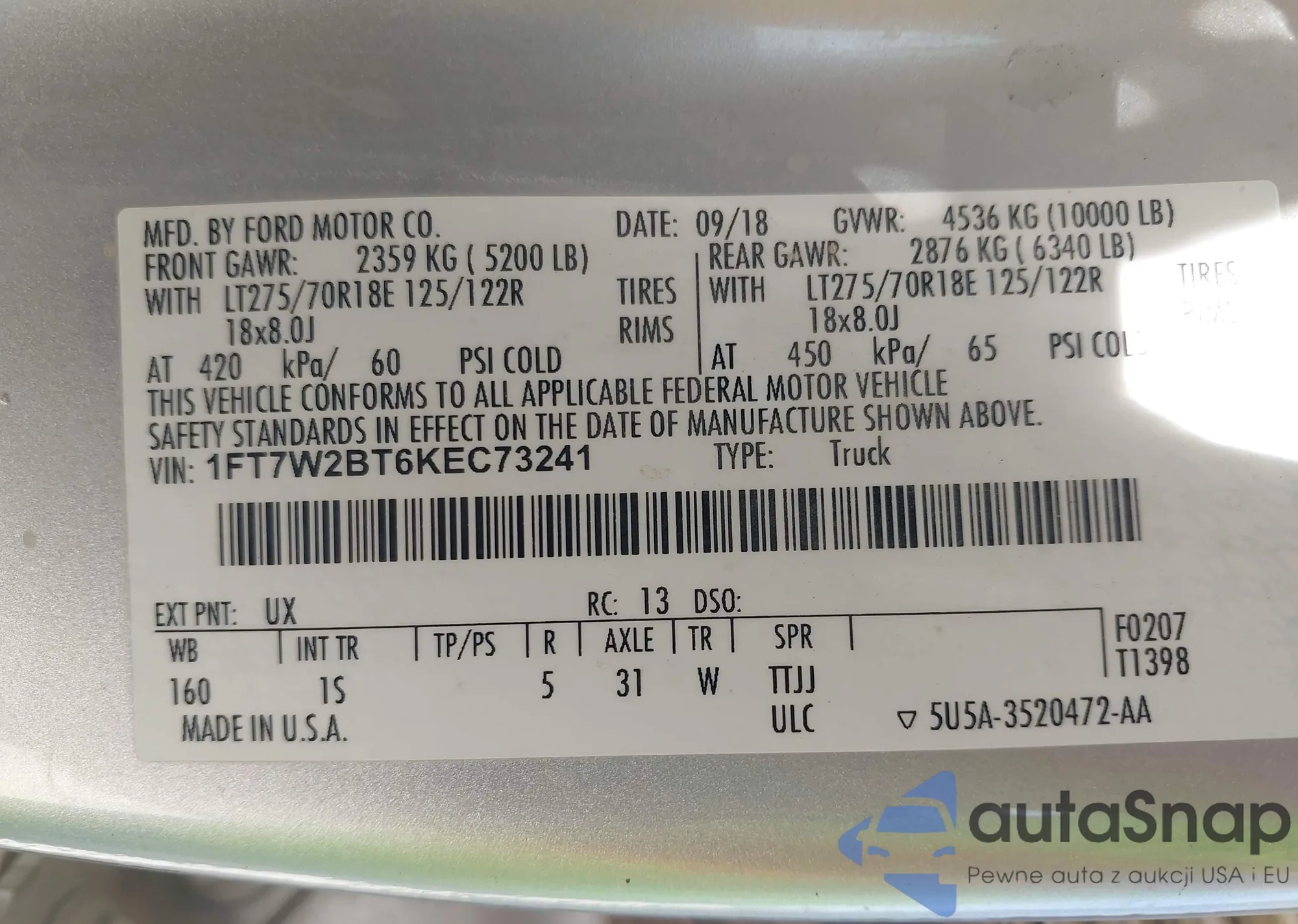 • VIN 1FT7W2BT6KEC73241
